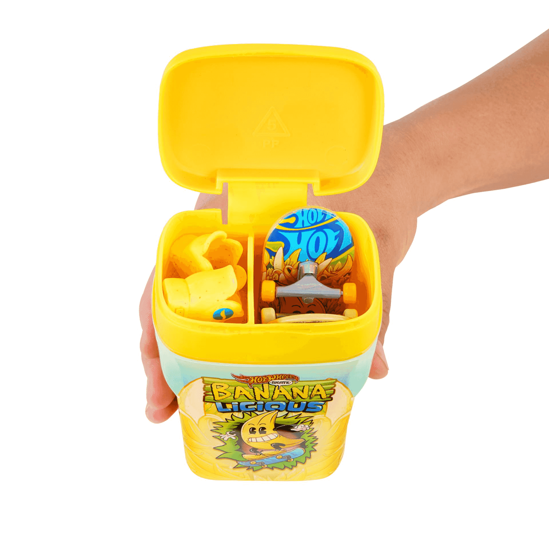 Hot Wheels Skate Caja de chicles con 2 monopatines de juguete con 1 par de zapatillas para dedos, mo