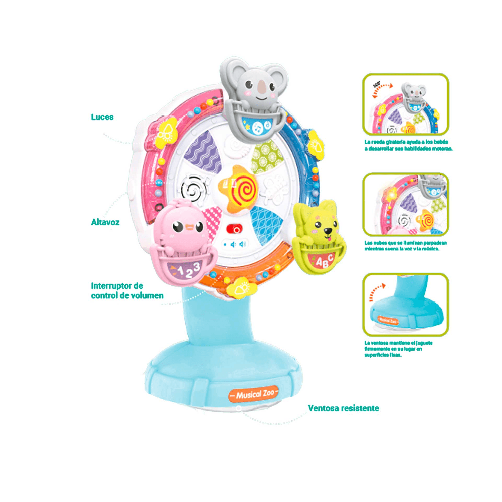 El Noria Animalito no es solo un juguete de entretenimiento, también ofrece múltiples beneficios para el desarrollo temprano de los bebés: