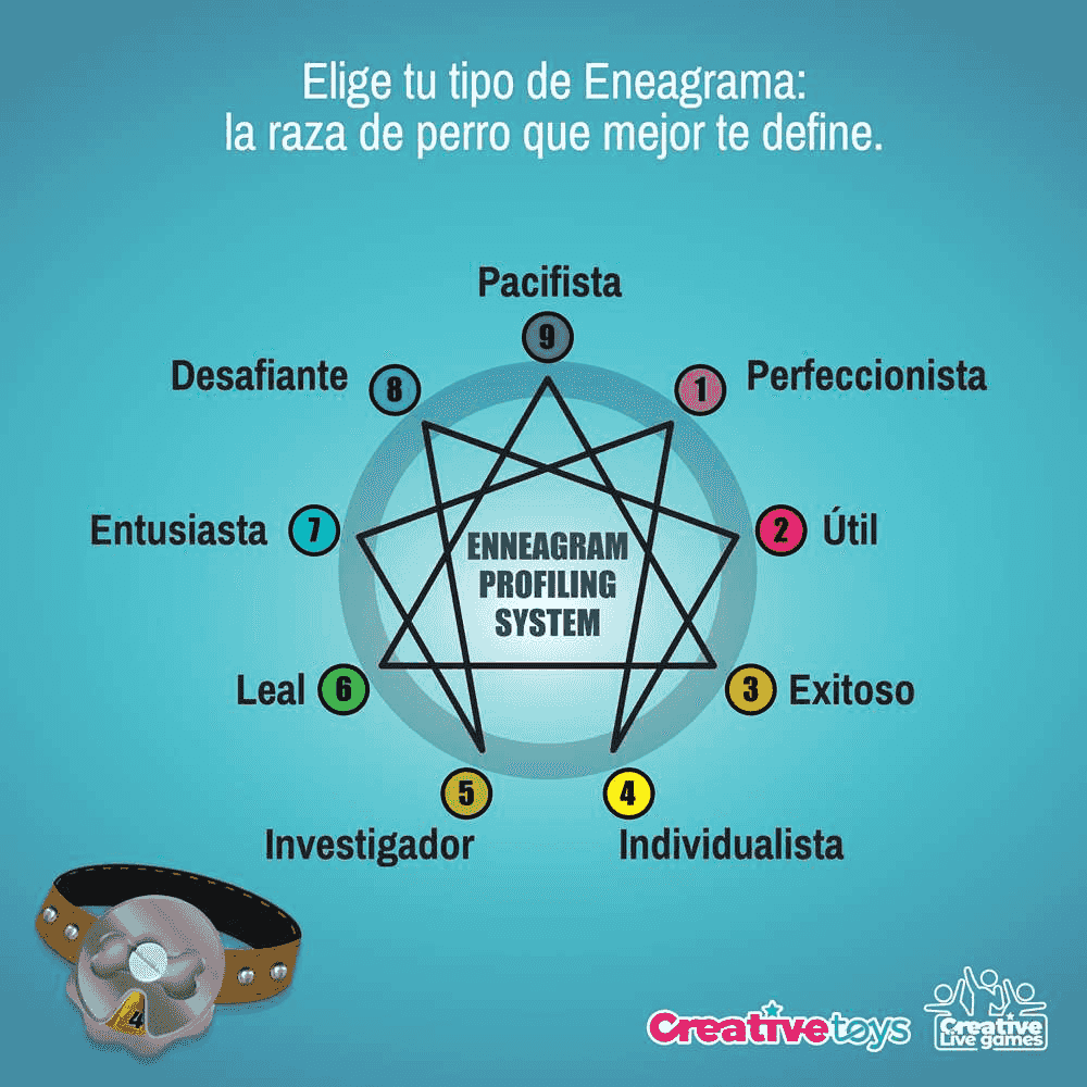 - Primero, eliges tu tipo de personalidad (eneagrama), representado por una raza de perro.