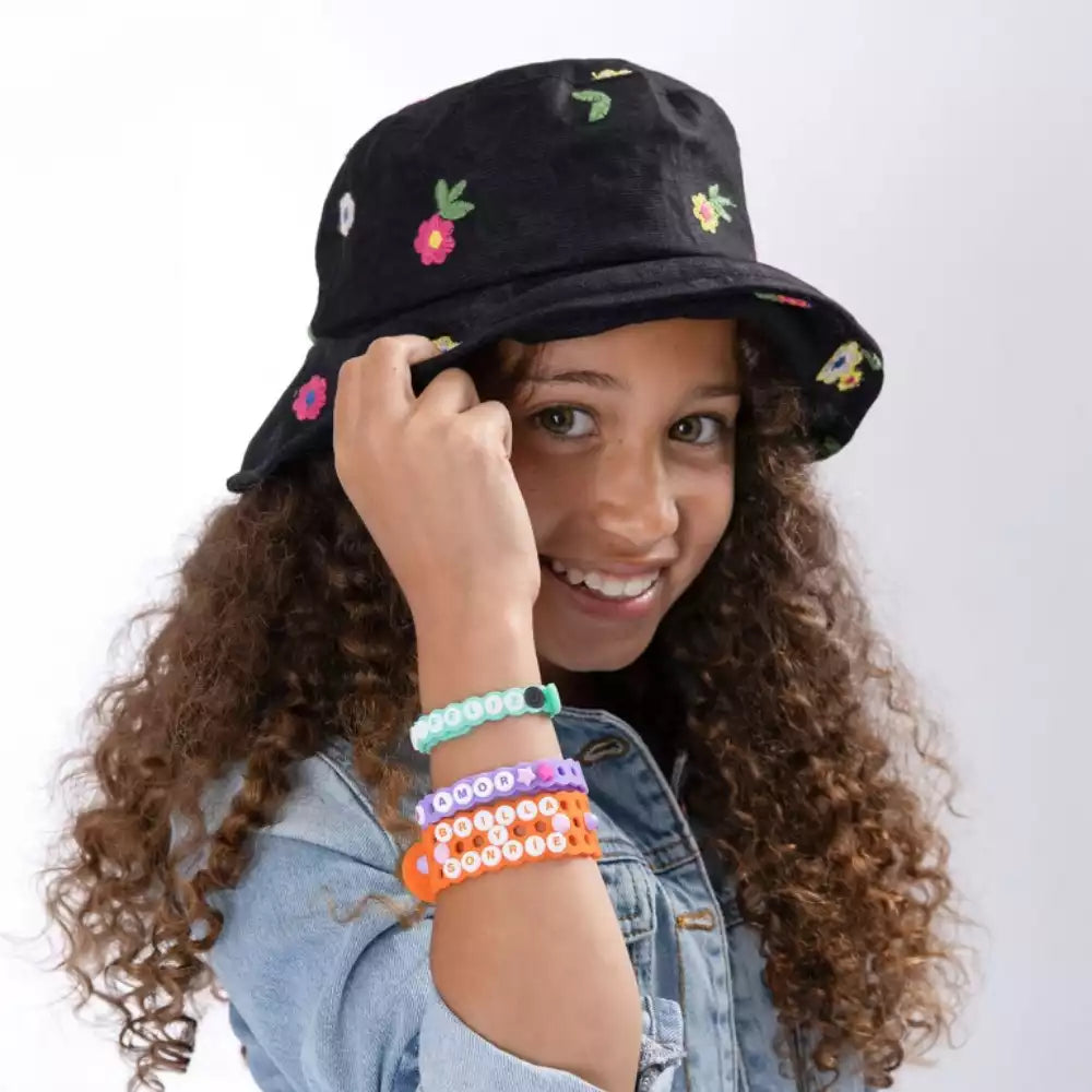 Diseña pulseras con tu nombre, crea combinaciones de colores o inventa mensajes secretos con las letras incluidas. Puedes cambiar los charms tantas veces como quieras y crear un diseño diferente cada día.
