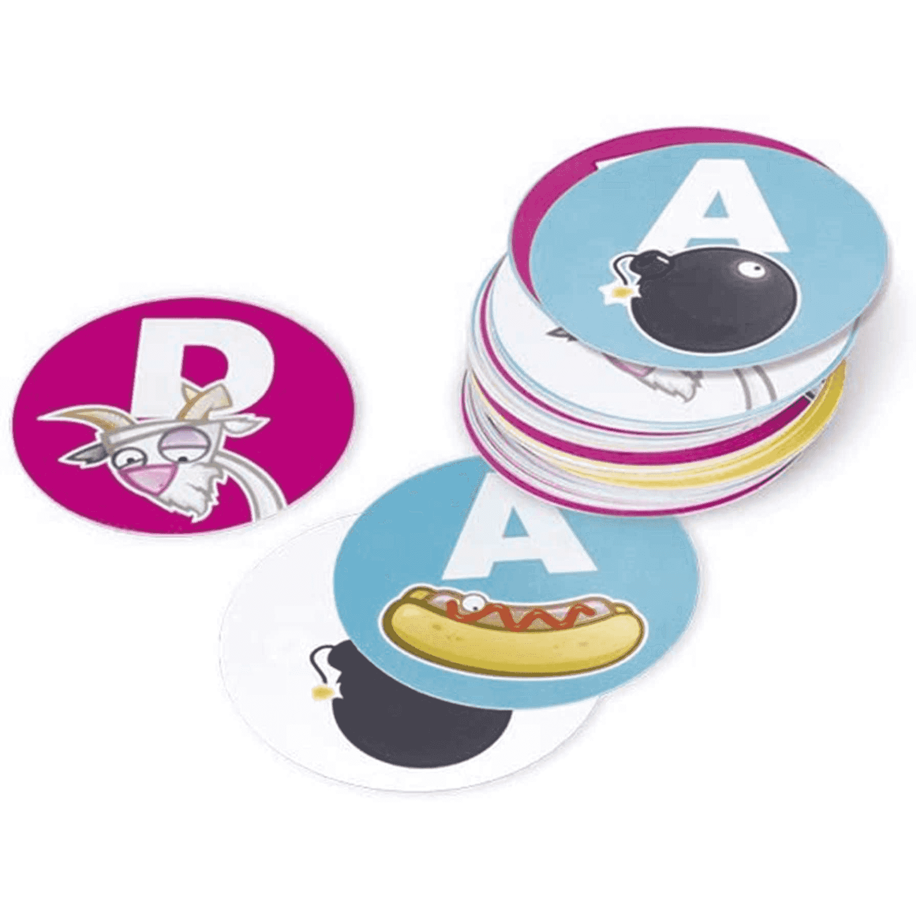 - Juego de reconocimiento y reacción; debes formar combinaciones de colores, objetos o letras para descartarte de cartas; el primero en quedarse sin cartas gana