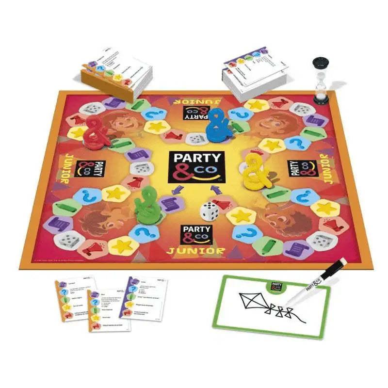 ¡Convierte cada reunión en una auténtica fiesta de risas! Con Party & Co. Junior, los niños se sumergen en un juego de mesa lleno de emoción, creatividad y desafíos en cinco categorías: preguntas y respuestas, dibujo, tarareos, mímica y “palabras prohibidas”.