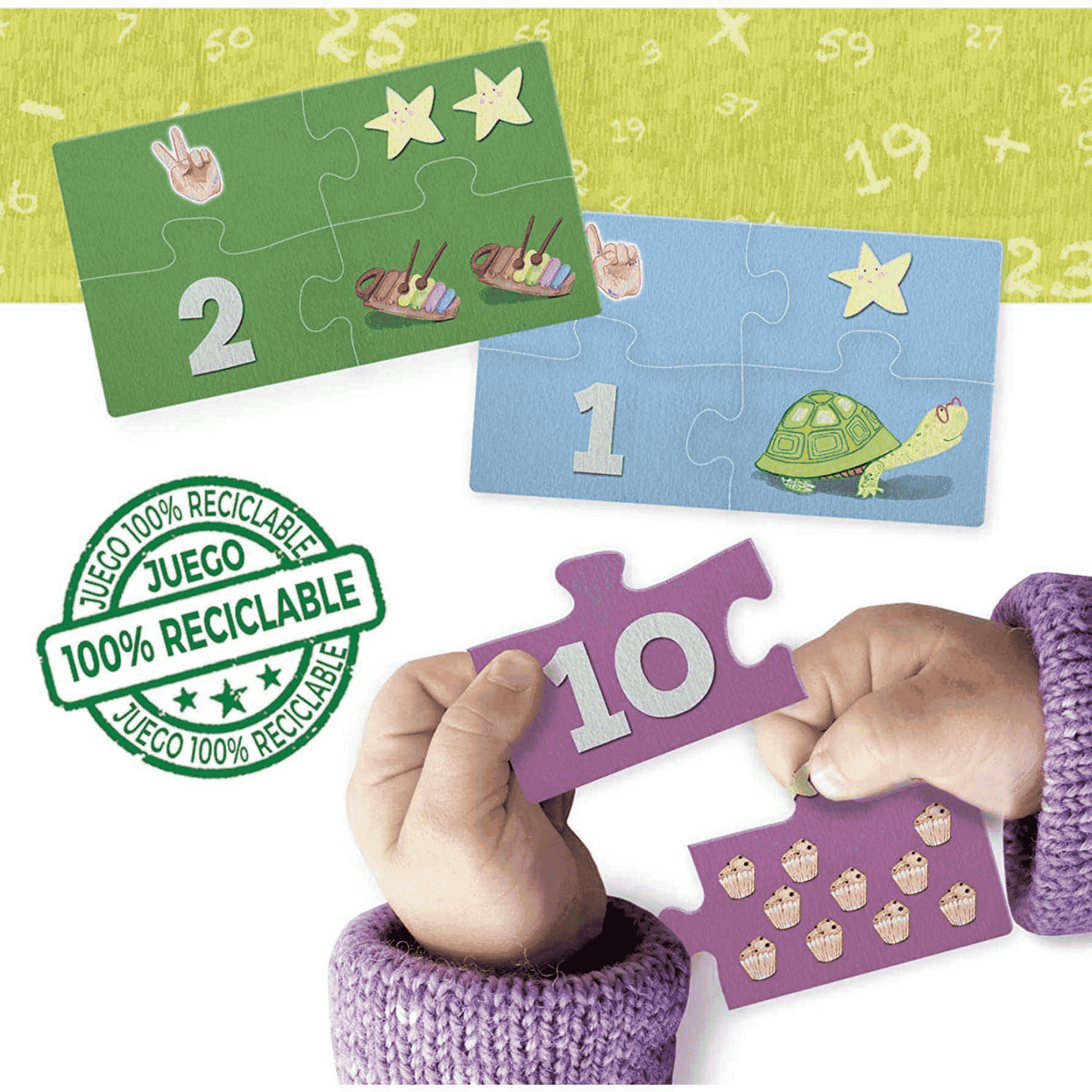 El primer paso para entrar en el universo de las matemáticas de una forma lúdica y divertida. Aprenderán a diferenciar los números del 1 al 10, a relacionarlos con las cantidades y a similar el orden de los números.