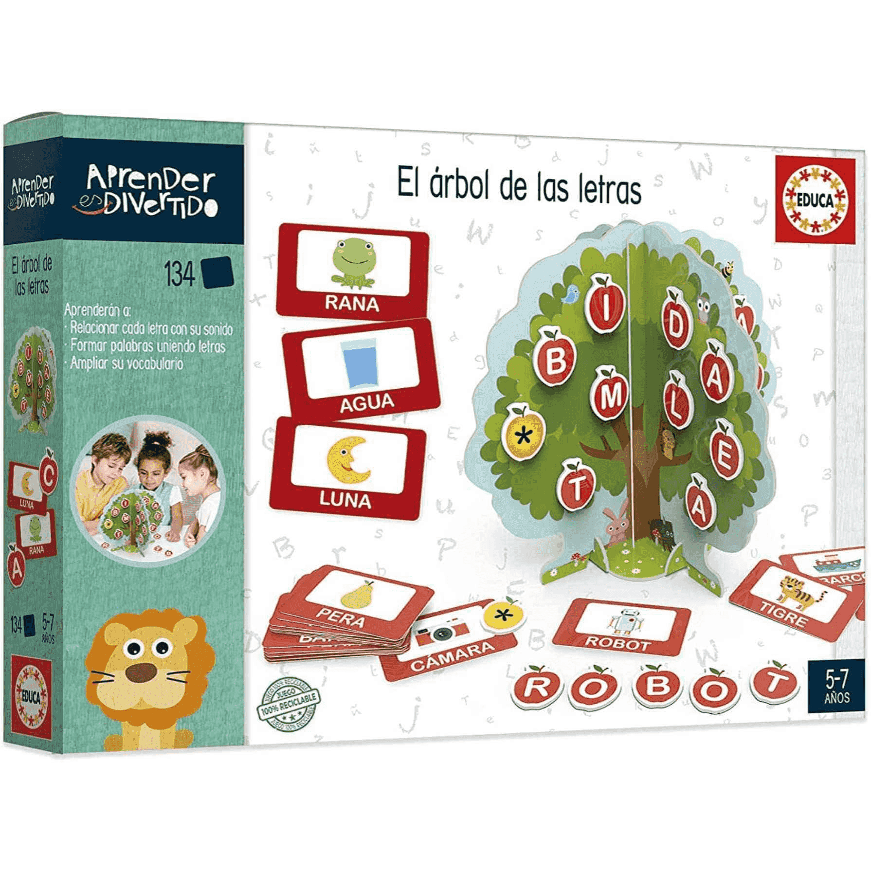 Con este divertido juego podrán iniciarse en el reconocimiento de las letras y su uso para formar palabras. Buscando letras en el árbol, los más pequeños intentarán ser los primeros en conseguir las necesarias para formar las palabras de sus tarjetas.