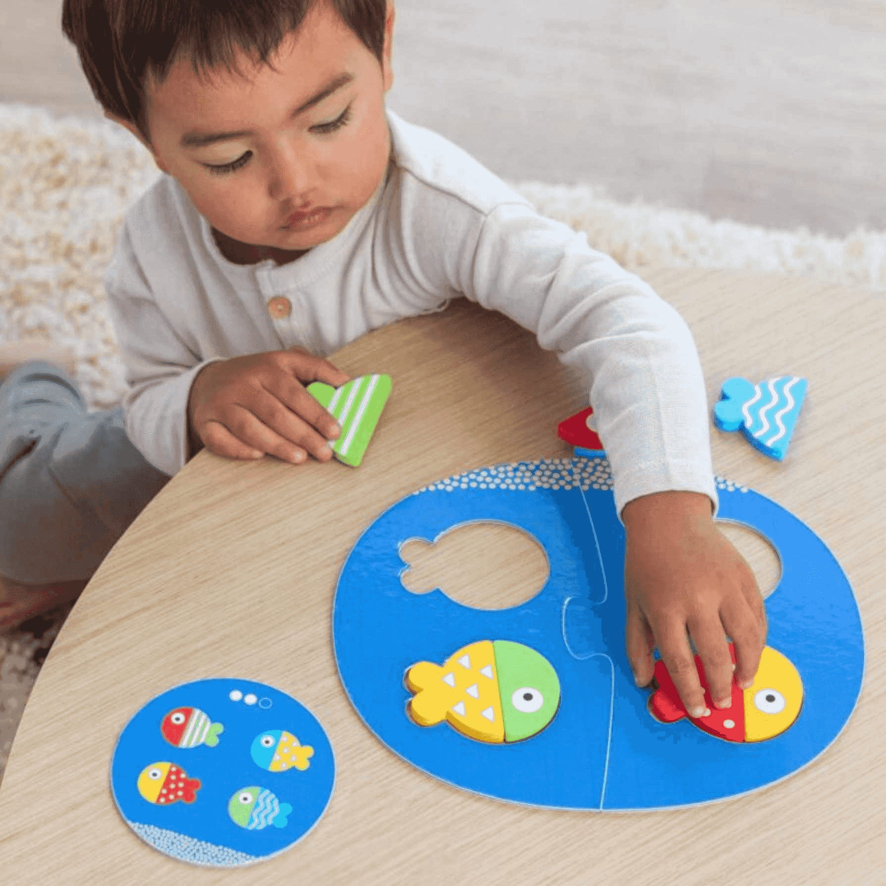 La caja inluye: Base de juego, 8 piezas de madera, 12 cartas con 24 desafíos progresivos.