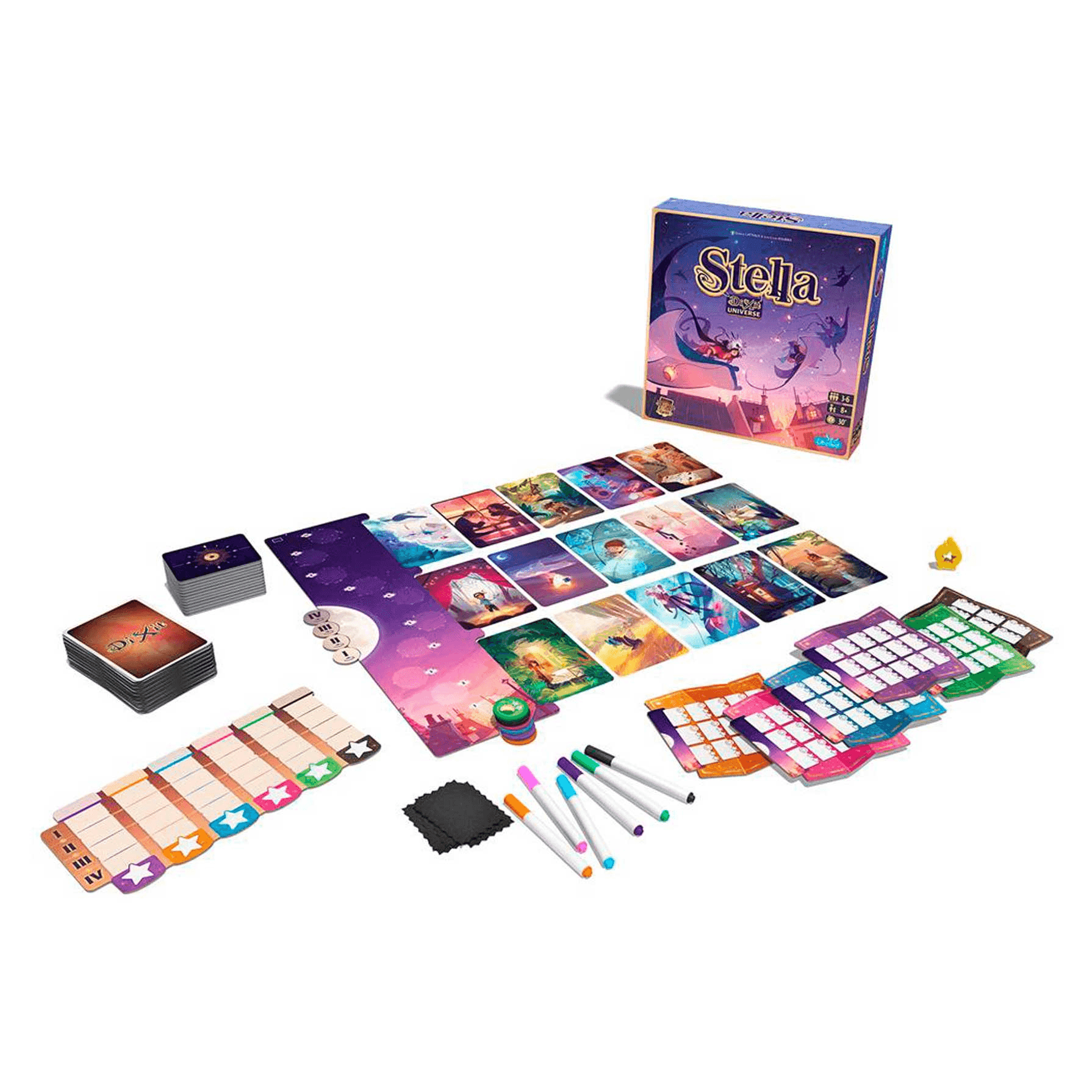 ¡Buscadores de estrellas! Explora el cielo y devuelve la luz a tu mundo. Stella es un juego competitivo en el cuál en cada ronda, los jugadores interpretarán las cartas Dixit en un tablero tras recibir una palabra de pista común.