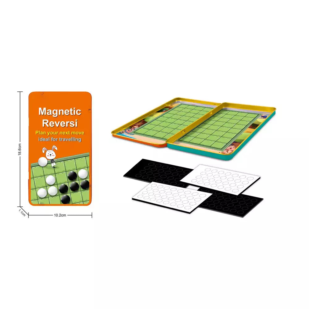 Cada lata contiene un juego magnético diferente, con fichas que se adhieren al tablero para evitar que se caigan durante el movimiento. ¡Perfectos para jugar en el coche, el tren o incluso en el avión!