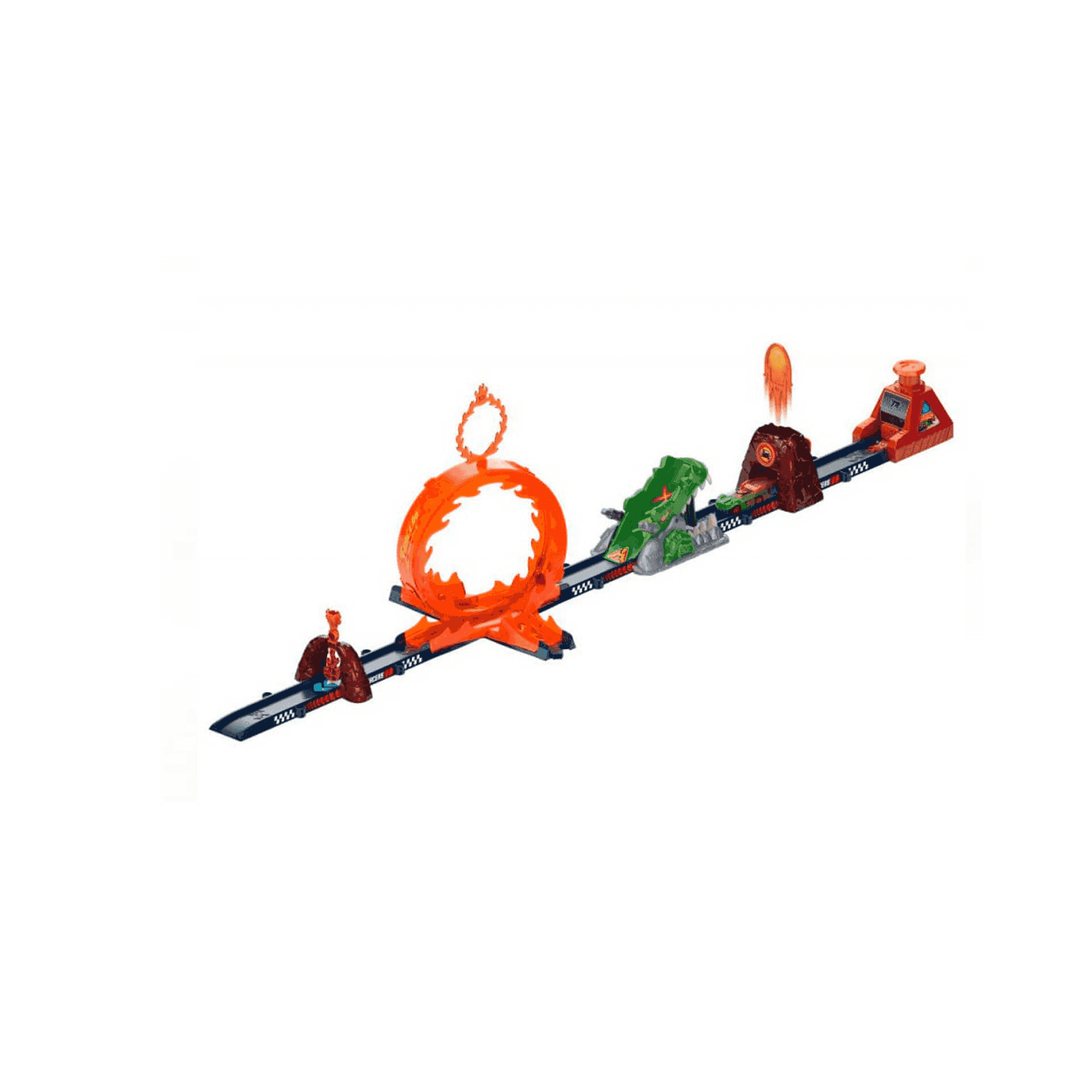 - Incluye un Volcanosaurus motorizado que avanza a toda velocidad por la pista.