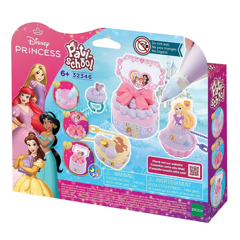 Con el Kit Creaciones Princesas Disney de Epoch (línea Pati-School), los niños podrán decorar bases inspiradas en sus personajes favoritos como llaveros, portafotos o anillos. Usan una pasta moldeable lila y múltiples adornos para personalizar sus creaciones y luego dejarlas secar al aire.