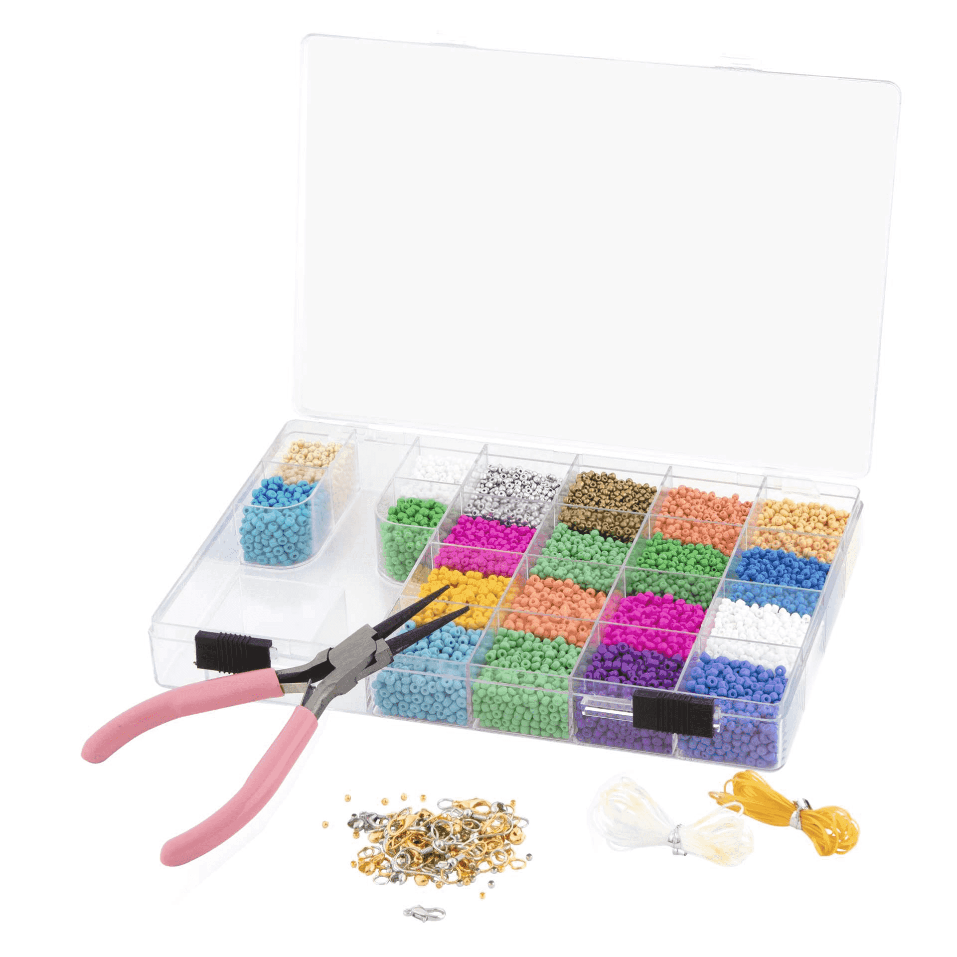 El Kit de Joyería con Cuentas de Semillas es perfecto para peques a partir de 6 años (¡y también para personas adultas con ganas de crear!). Incluye más de 20 compartimentos con cuentas de colores vivos, herramientas y accesorios para diseñar pulseras, collares, llaveros o lo que la imaginación dicte.