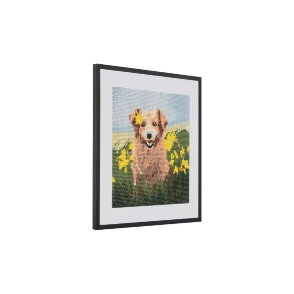 - Lienzo adhesivo numerado y cristales de color que guían tu creación paso a paso de forma entretenida.
