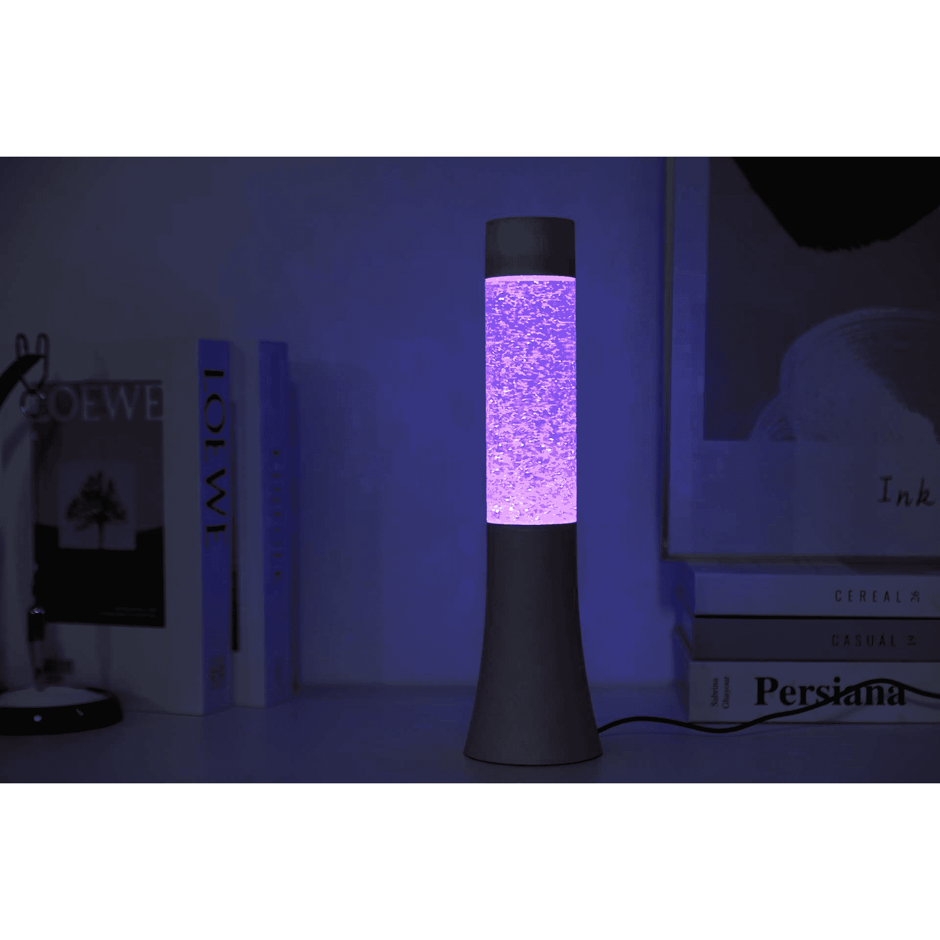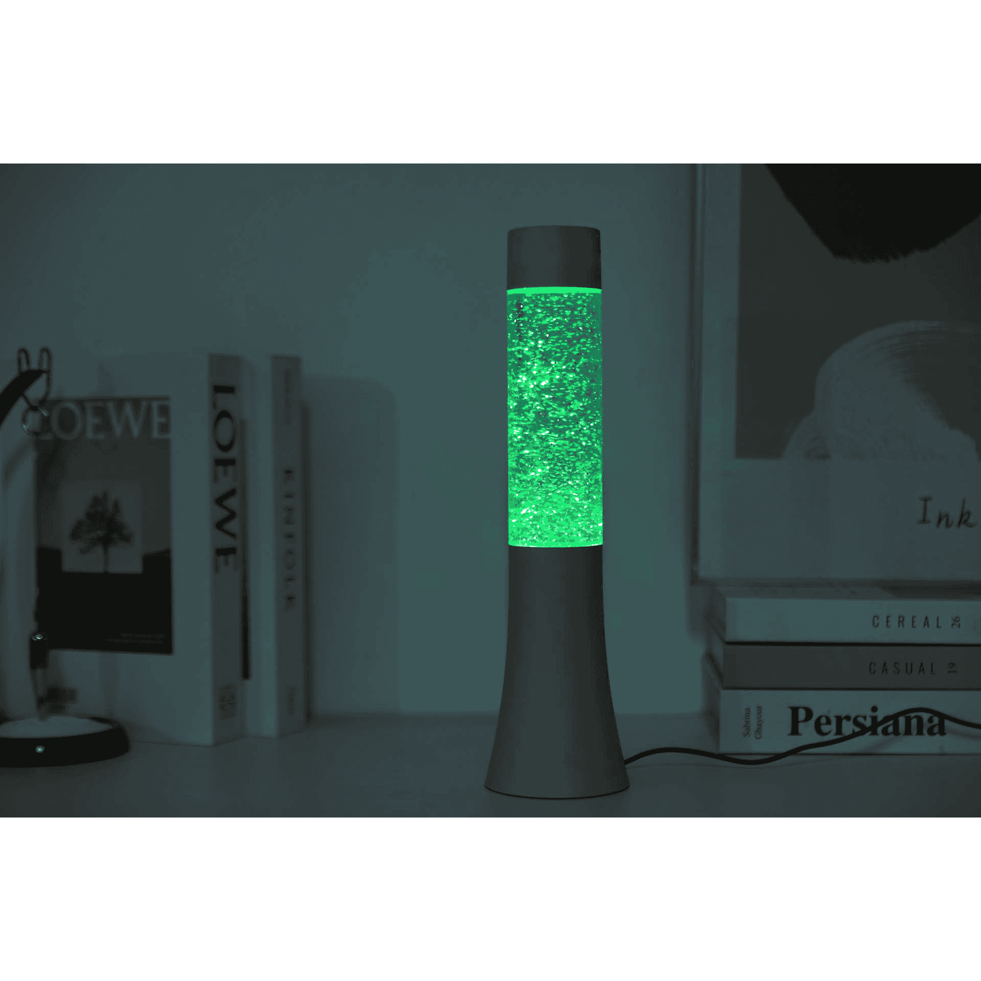 Este modelo no necesita bombilla: funciona con tecnología LED segura y de bajo consumo. Su efecto de purpurina en movimiento fascina y ayuda a crear un ambiente tranquilo, ideal para relajarse antes de dormir. Además, su diseño compacto la hace fácil de colocar en estanterías, escritorios o mesitas de noche.