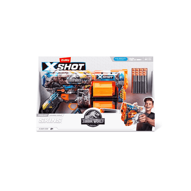 El X-Shot Skins Dread presenta un diseño impresionante basado en los icónicos dinosaurios de la saga Jurassic World. Su estética detallada y colores vibrantes capturan la esencia de estas criaturas prehistóricas, convirtiéndolo en un juguete creativo que estimulará la imaginación de los más pequeños.