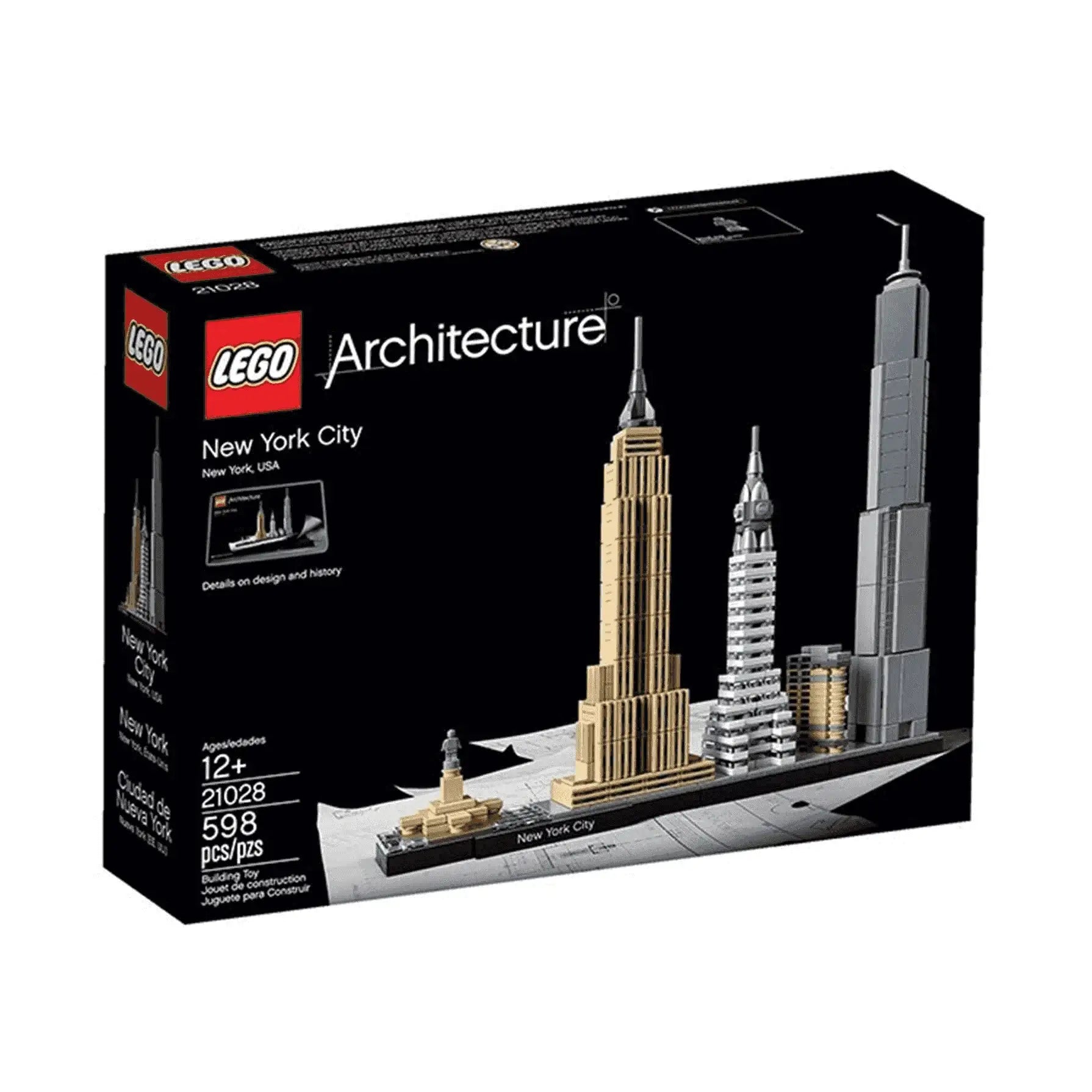 - El folleto incluido contiene información acerca del diseñador, la arquitectura y la historia de cada edificio, así como datos históricos sobre la ciudad de Nueva York y su legado arquitectónico (sólo en inglés; disponible en otros idiomas en LEGO.com/architecture).