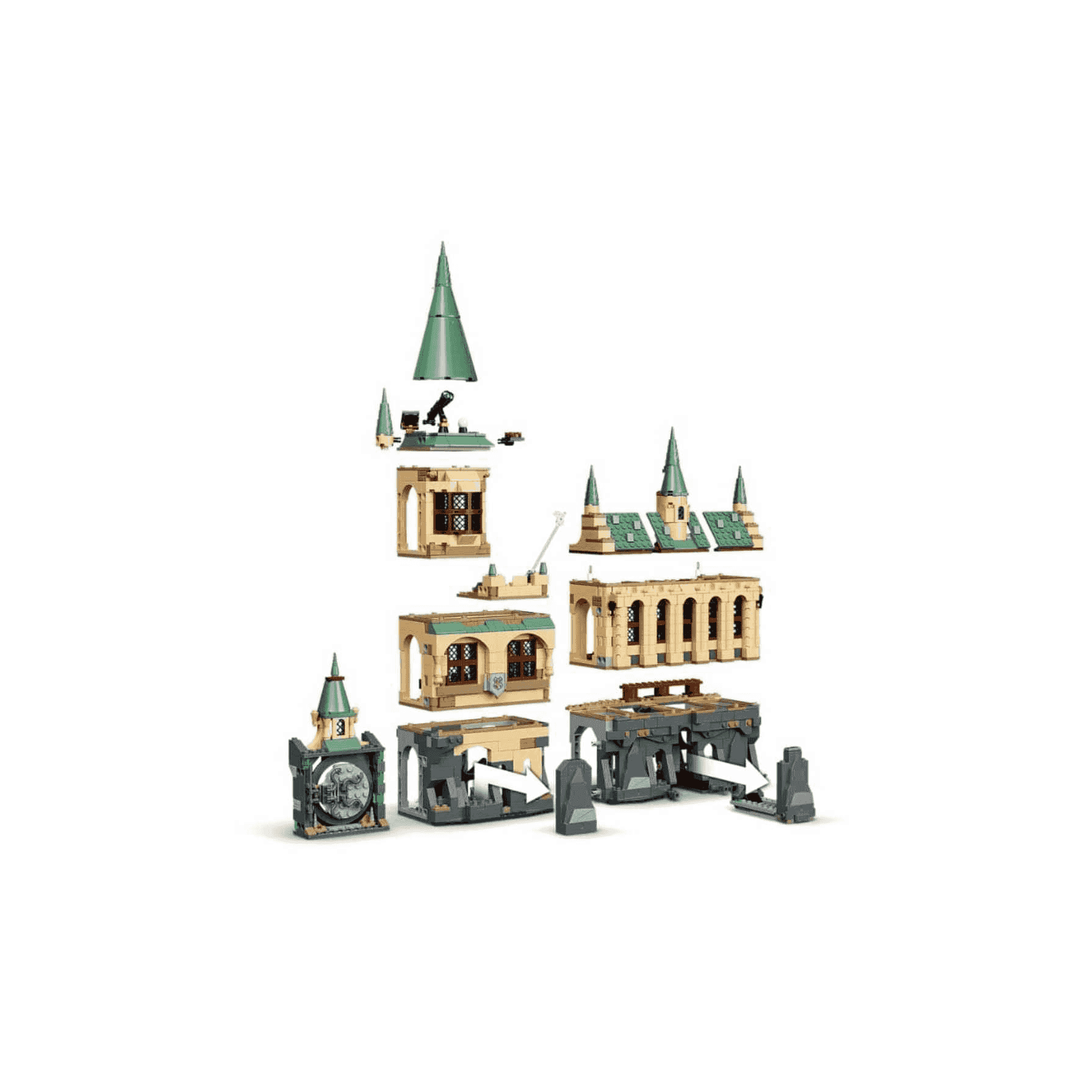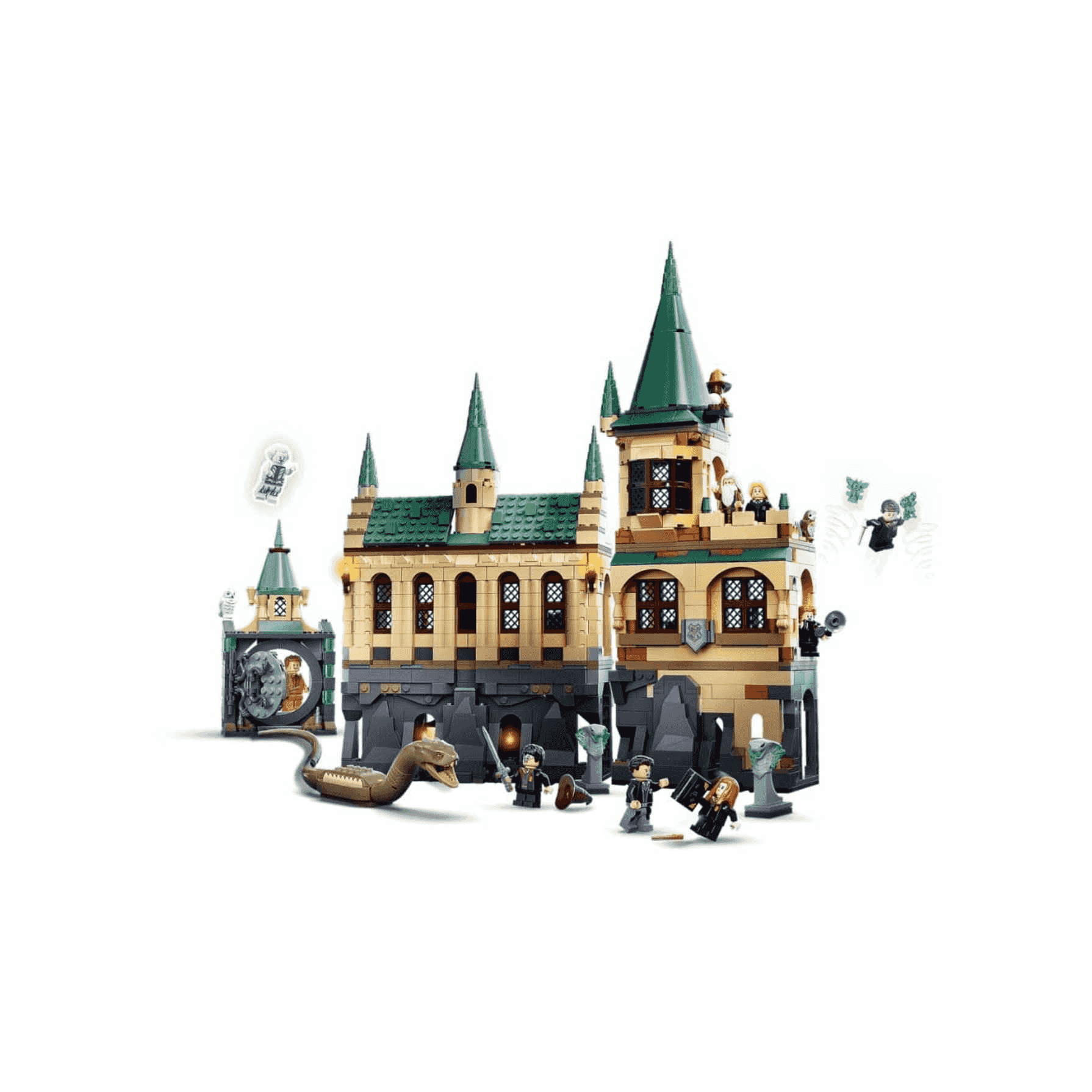 En el comedor se pueden ver las dos mesas largas y el famoso atril dorado. Incluye accesorios como el sombrero seleccionador. A la cámara secreta se accede a través de una estatua que, al abrir la boca, muestra el corredor. Adicionalmente, el juego trae diez figuras que representan los personajes más emblemáticos de la trama. Está pensado para recrear todas las escenas importantes.