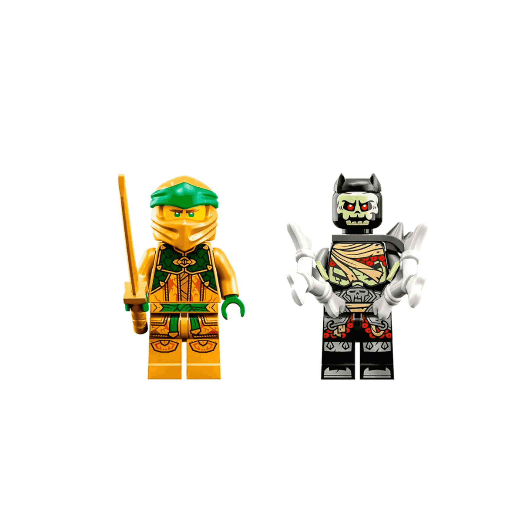 Los niños a partir de 6 años se convertirán en auténticos expertos en el mundo de acción y fantasía de LEGO® NINJAGO® construyendo el Meca de Combate Ninja EVO de Lloyd (71781) y jugando con él. El set incluye 2 mecas articulados con armas geniales para interpretar emocionantes batallas. Además, los peques podrán transformar el meca de Lloyd en una versión evolucionada con armadura dorada y alas para ayudarle a triunfar. Los mejores juguetes infantiles, ¡con una recompensa extra! Este set LEGO NINJAGO contiene 2 minifiguras: Lloyd Dorado y su enemigo el Guerrero Huesos, que librarán épicos combates a bordo de las cabinas de sus mecas. Como recompensa por superar el desafío, los niños obtienen una bandera de resiliencia coleccionable. Divertida experiencia digital para fans de LEGO Déjate llevar por la app LEGO Builder y vive con tu peque una intuitiva aventura de construcción en la que podréis controlar vuestro avance en el proceso, acercar y girar modelos en 3D y guardar sets.
