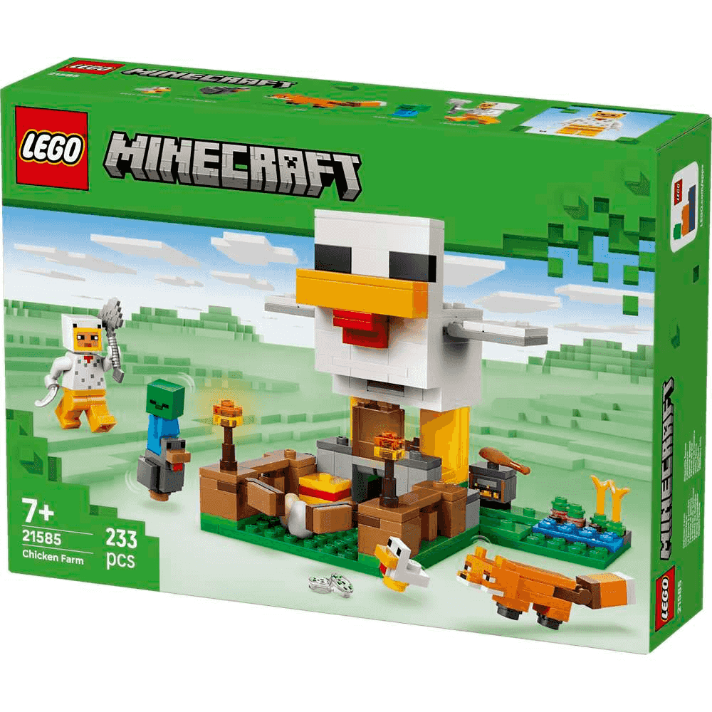 Cría gallinas y cultiva productos con el juguete LEGO Minecraft La Granja de Gallinas (21585) para niñas y niños a partir de 7 años. Este set de construcción desafía a los jugadores a cuidar de una gallina fría y una gallina bebé con una minifigura del Fan del Pollo mientras se enfrentan a un zorro (a quien le gusta comer gallina fría) y un zombi bebé (a quien le gusta hacer de jinete a lomos de las gallinas). El gallinero de juguete tiene forma de gallina con alas móviles y un corral delante con una puerta que se abre. La gallina gigante pone huevos y también vierte semillas por la boca en un contenedor que se inclina cuando las gallinas necesitan comida. Incluye divertidos accesorios: antorchas, heno, un ahumador, 2 huevos, 2 montones de semillas, un muslo de pollo, una pluma y un hacha. Esta fantástica idea de regalo para jugadores de Minecraft, constructores LEGO y fans de los sets de decoración inspirados en videojuegos viene con la app LEGO Builder. El set contiene 233 piezas.