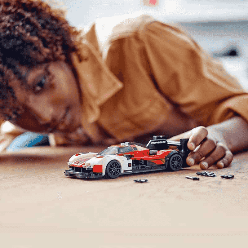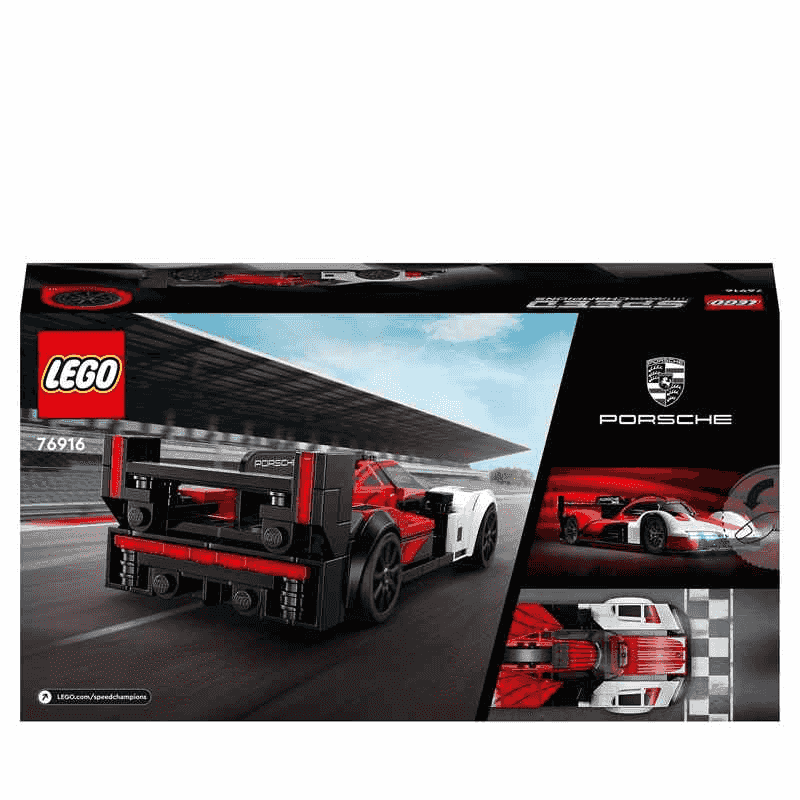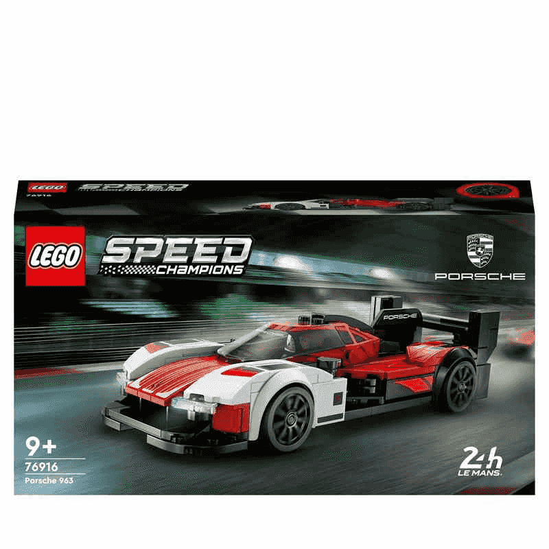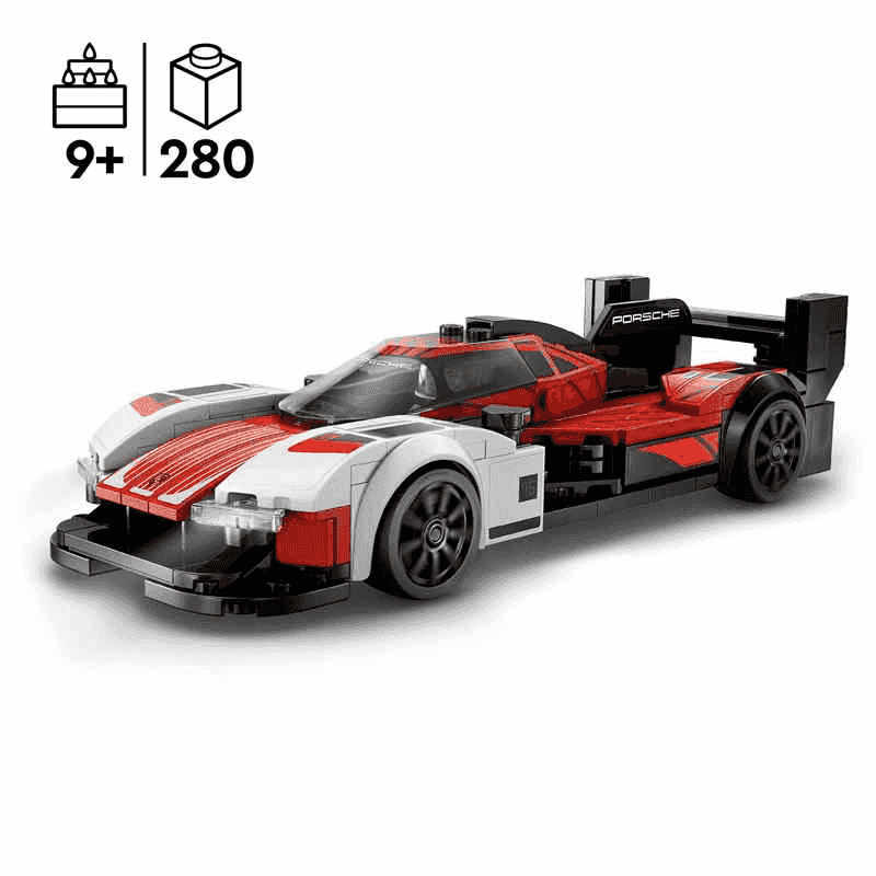 El set de construcción LEGO® Speed Champions Porsche 963 (76916) recrea con fidelidad el sensacional diseño del modelo original. A los niños y niñas de 9 años o más y los coleccionistas de réplicas de coches de todas las edades les entusiasmará construir, exponer e interpretar emocionantes carreras con este fabuloso juguete. Construye tu propio Porsche Esta miniversión del Porsche 963 Le Mans Daytona Hybrid incluye detalles realistas del coche de verdad: los colores distintivos rojo, negro y blanco (una combinación inspirada en los coches de carreras Porsche de la década de 1980), los prominentes guardabarros, el capó bajo, el habitáculo, el alerón trasero y la aleta posterior. ¡El set trae también una minifigura de un piloto para competir en circuitos! Divertida experiencia digital para fans de LEGO Déjate guiar por la app LEGO Builder y vive con tu peque una aventura de construcción sencilla e intuitiva. Acerca y gira modelos en 3D, guarda sets y controla tu avance en el proceso.