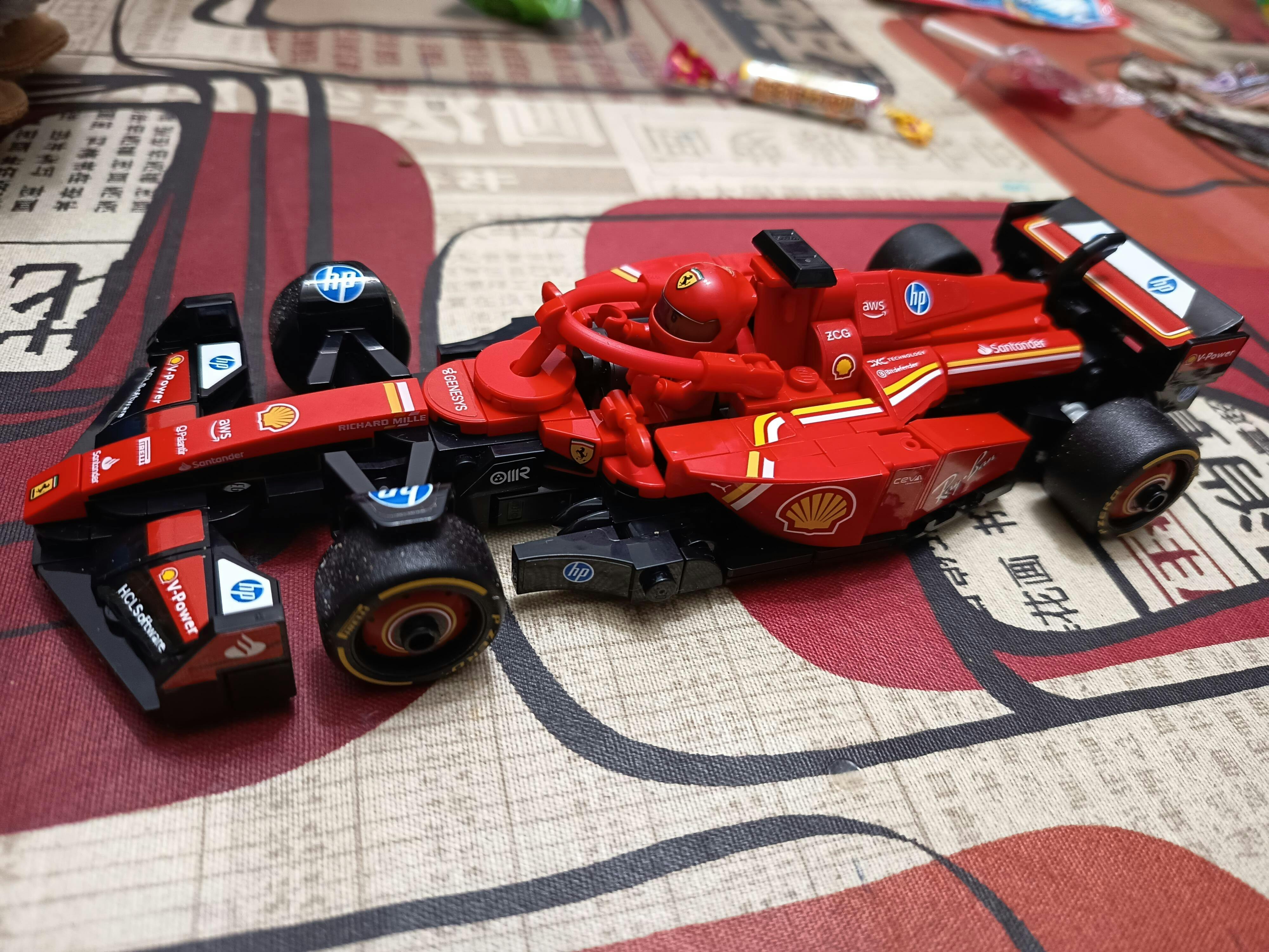- Medidas: El coche Ferrari SF-24 F1 de juguete de este kit de 275 piezas mide aproximadamente 4 cm de altura, 20 cm de longitud y 7 cm de anchura