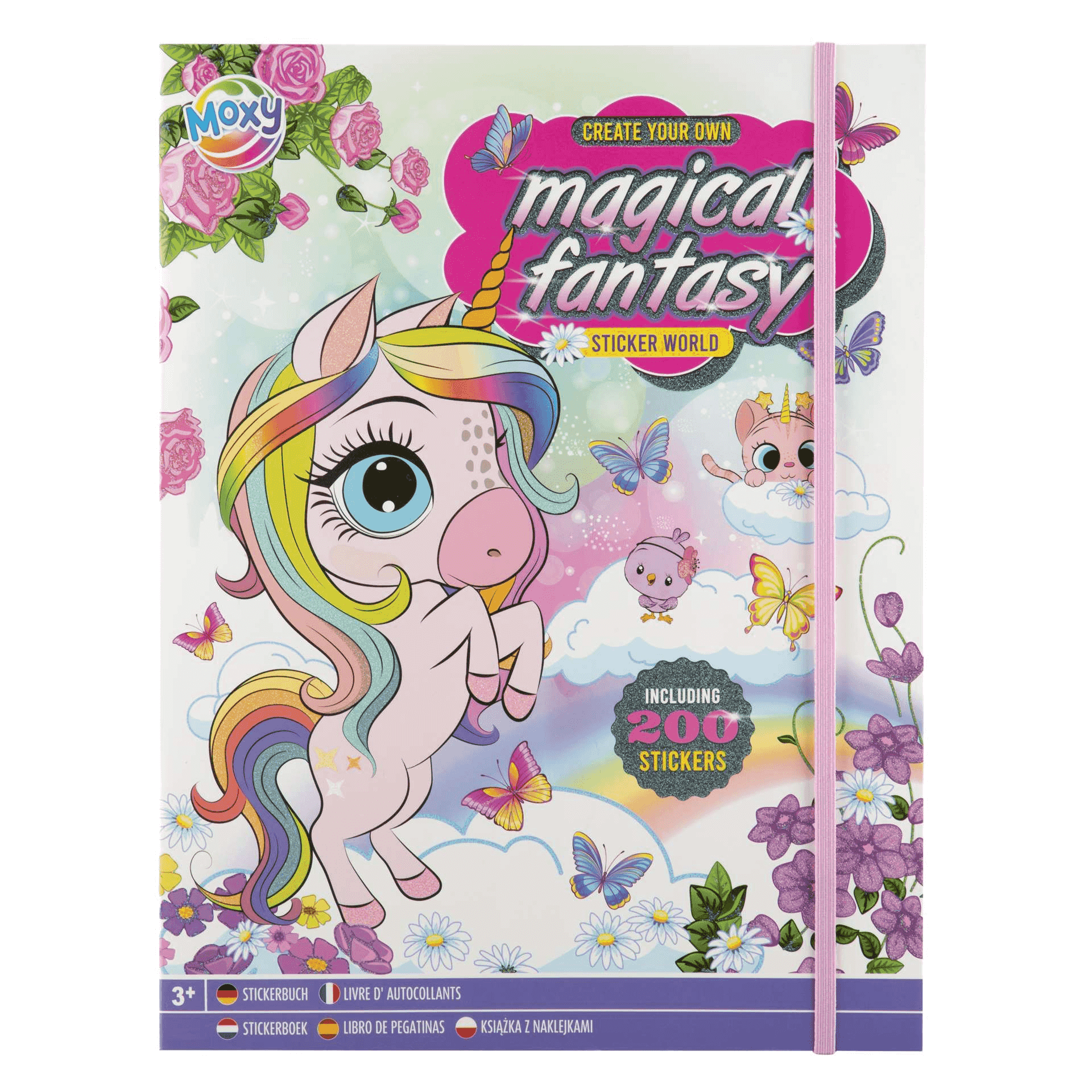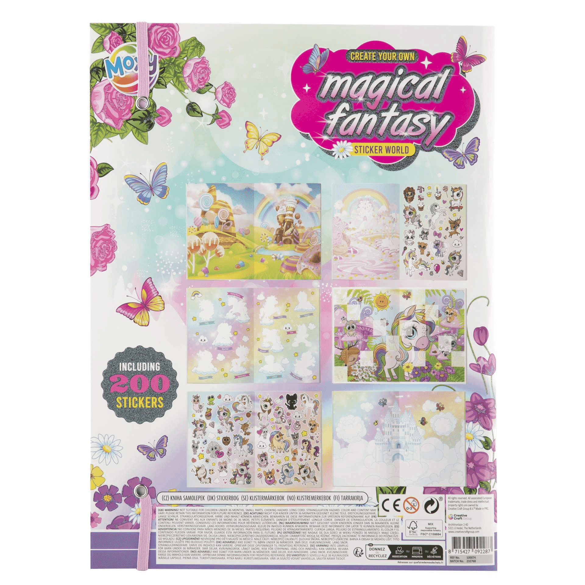 Libro de Pegatinas Mundo Fantasía con 200 Stickers | Unicornios y Escenarios Mágicos para Crear Hist