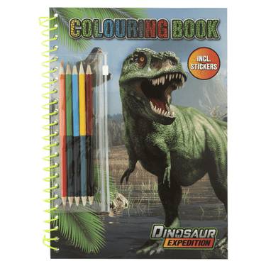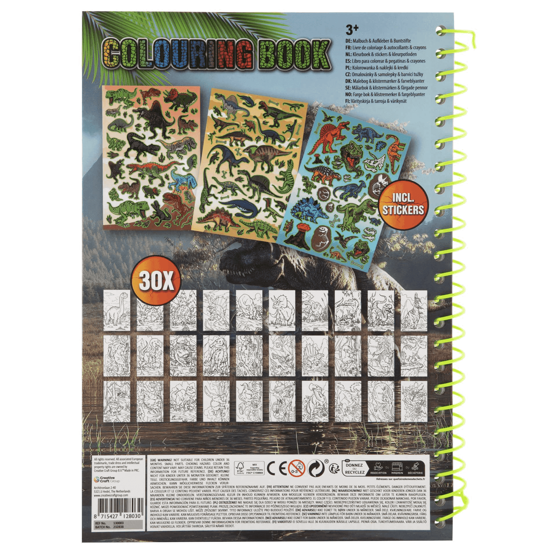 ¡Una aventura jurásica en cada página! El libro para colorear Dinosaur Expedition en formato A4 es ideal para que peques desde los 3 años se adentren en el mundo de los dinosaurios mientras desarrollan su creatividad. Incluye 30 láminas para colorear con escenas prehistóricas y pegatinas temáticas para completar cada dibujo con un toque personal.