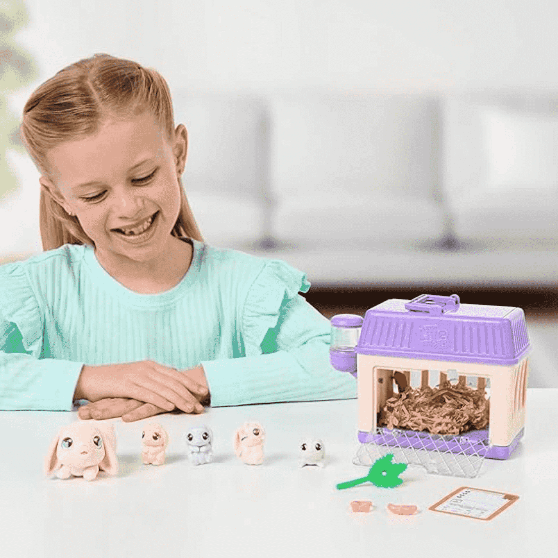 Este set permite a los niños vivir la emoción de cuidar a su conejita y esperar con ilusión la llegada de sus bebés. Con accesorios personalizables y una mecánica de juego interactiva, cada experiencia es única y emocionante.
