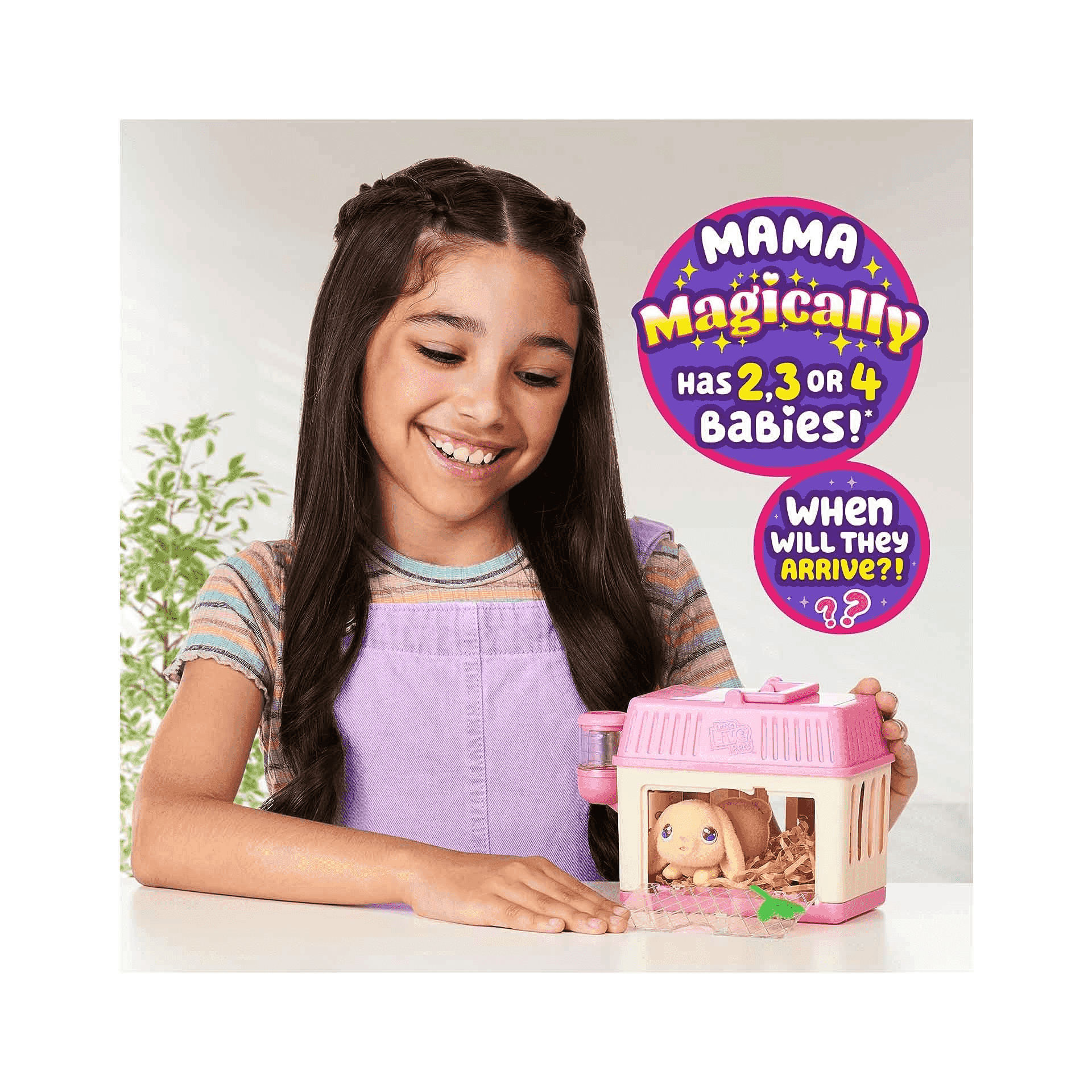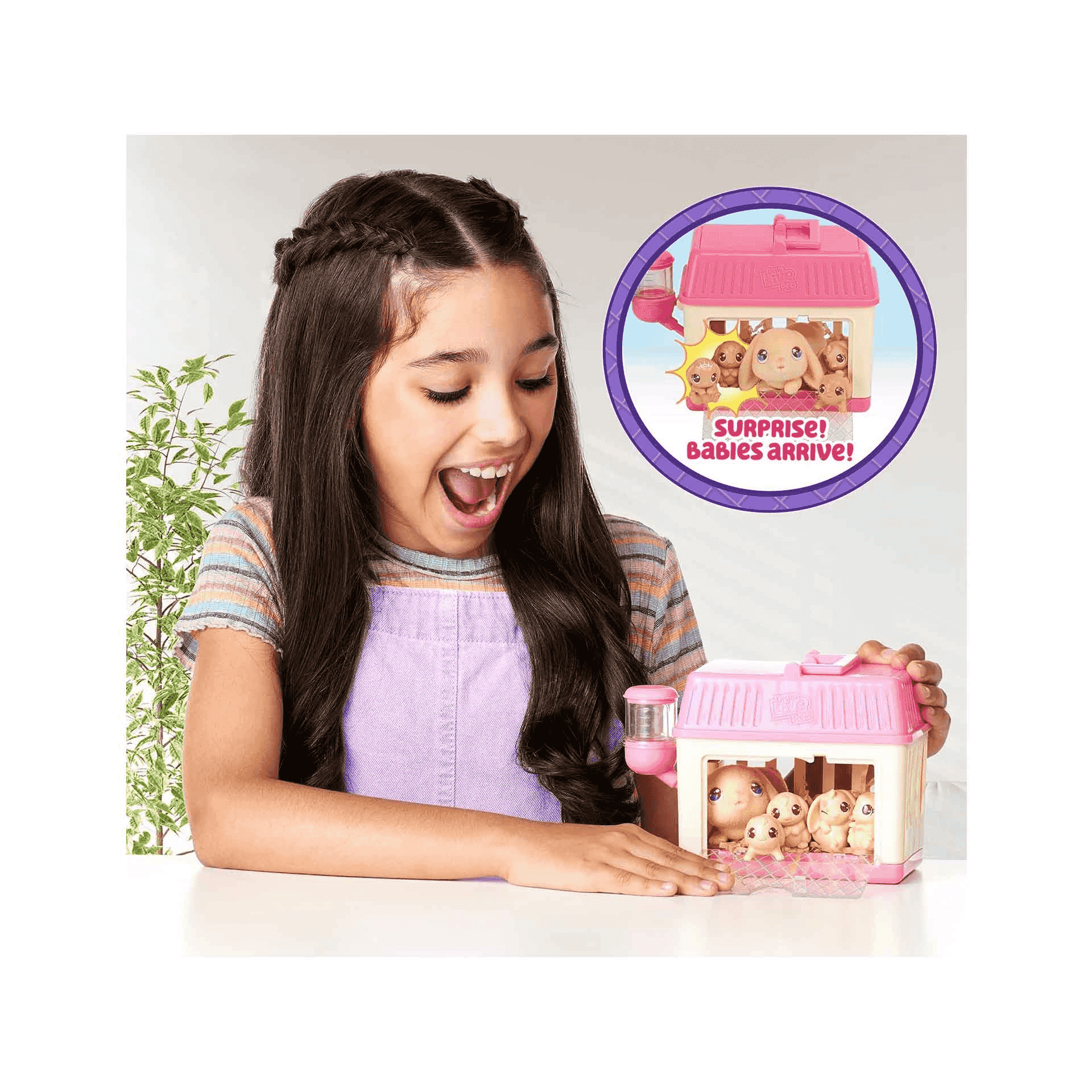 Nacerán los bebe por sorpresa. Los bebes están en la parte superior de la casita. El juego consiste en alimentar a la mamá conejito y en breve ´nacerán´ por sorpresa las crías.
