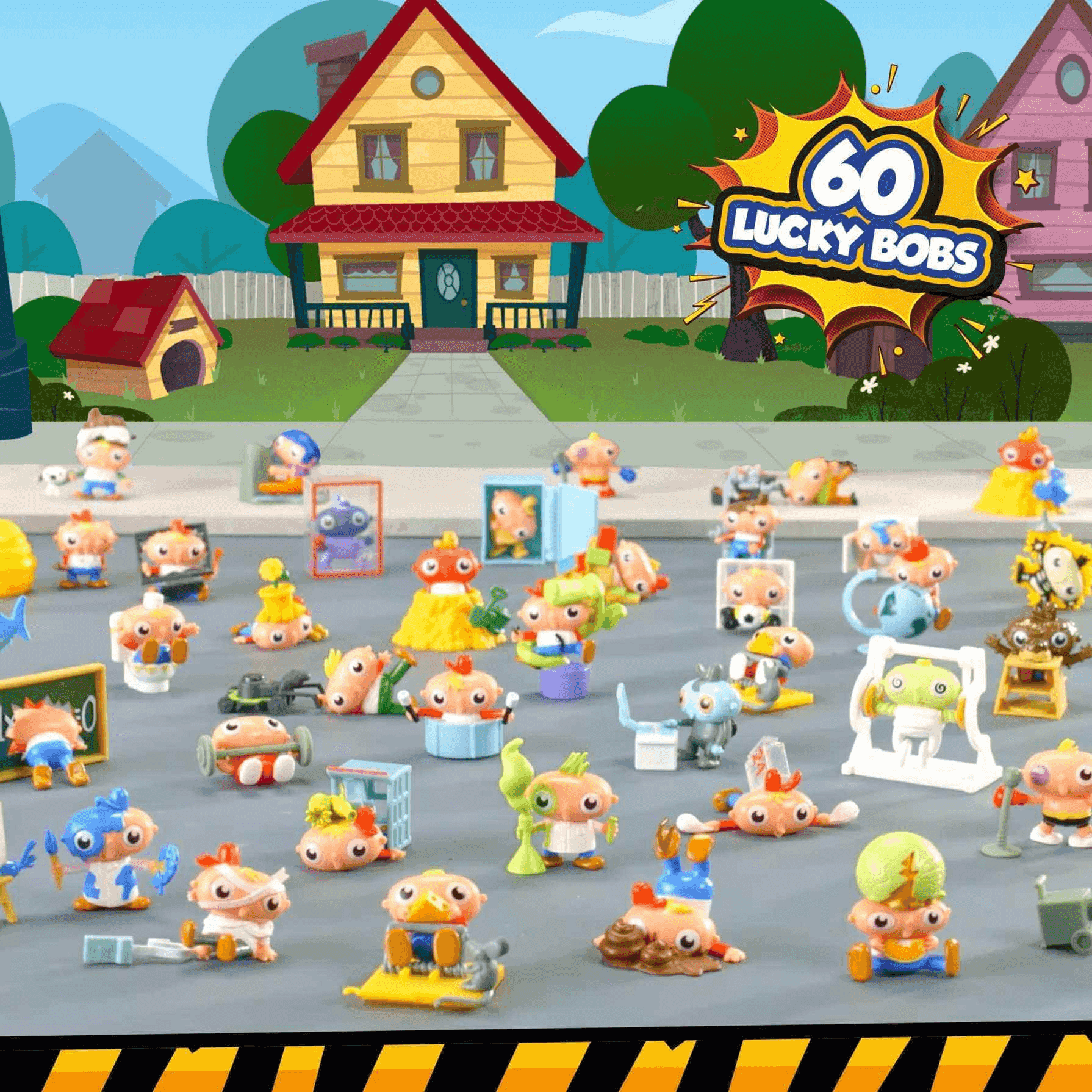 - Un unboxing impresionante hará que tus 2 Lucky Bobs salgan disparados de la caja, juega con ellos y sus accesorios recreando tus gags favoritos y buscando múltiples maneras de interactuar con ellos.