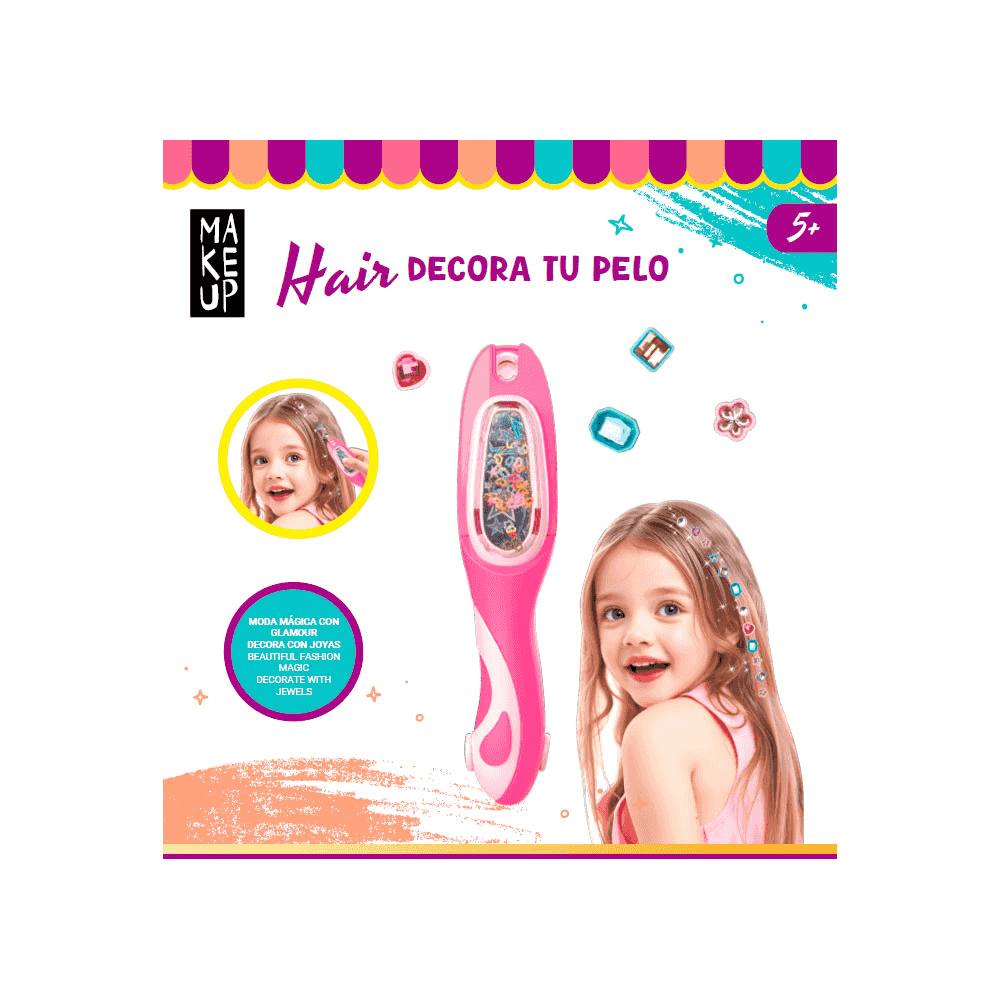 Make Up Planet Hair Decora tu Pelo convierte el peinado diario en una experiencia llena de brillo y creatividad. Con este set infantil, las niñas y niños a partir de 5 años pueden decorar su cabello con pequeñas gemas de colores, diseñar su propio estilo y transformar su look en cuestión de minutos. Una propuesta divertida, segura y perfecta para quienes disfrutan del juego simbólico y la expresión personal.