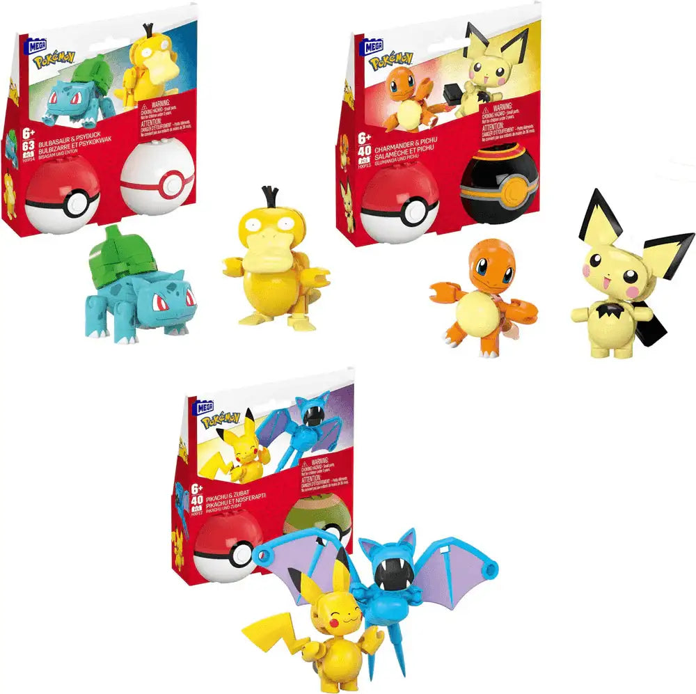 Descubre el poder oculto con esta colección de packs de 2 Poké Ball. Elige entre Pikachu y Zubat, Charmander y Pichu, y Bulbasaur y Psyduck, o construye todos para tener un equipo entero. Se venden por separado.