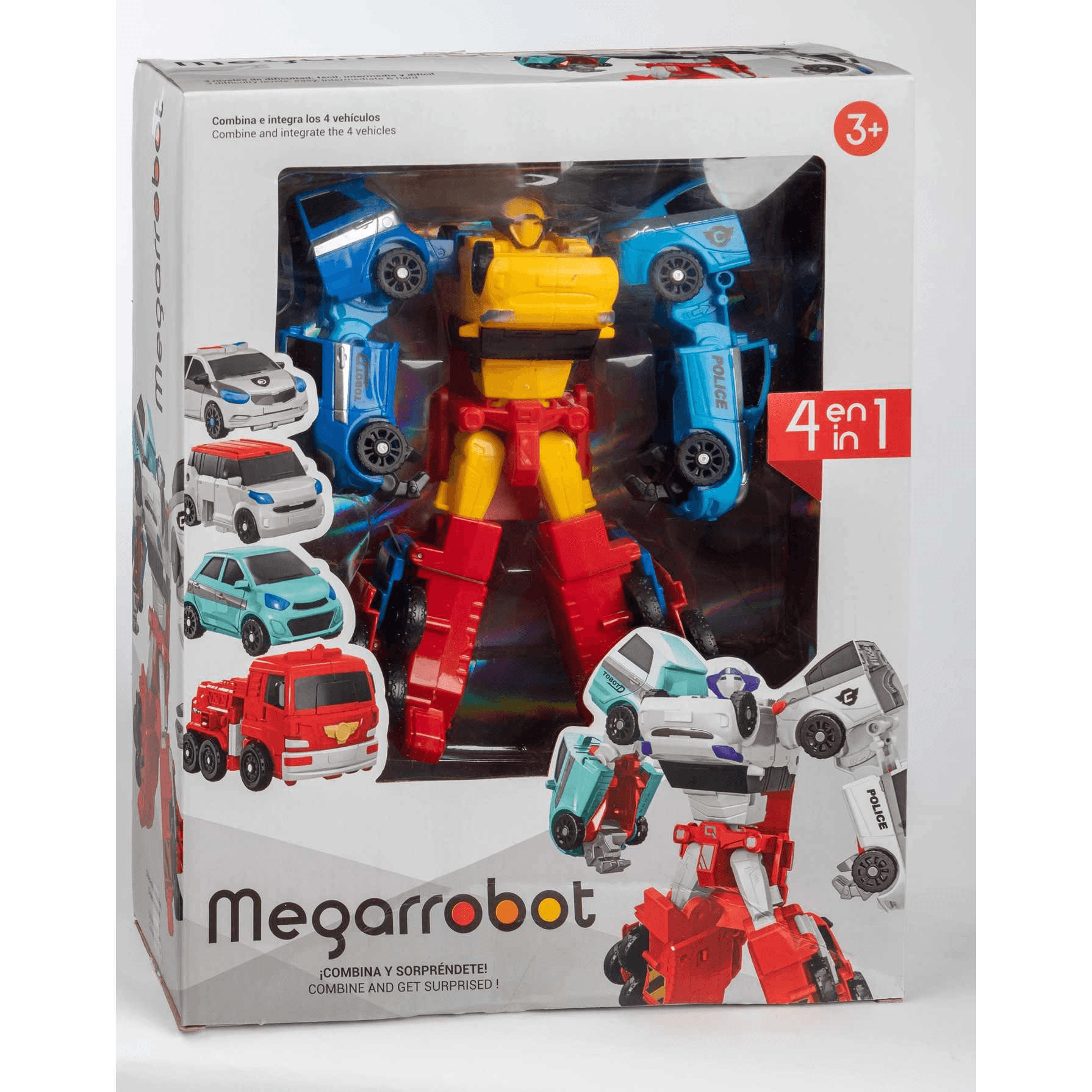Megarobot 4 en 1 - 2 Modelos es un juguete que promueve la imaginación e inventiva de niños y niñas mayores de 3 años. Es un juguete para construir un espectacular robot. Lo mejor de todo es que este personaje a su vez está conformado por cuatro automóviles de colores llamativos.