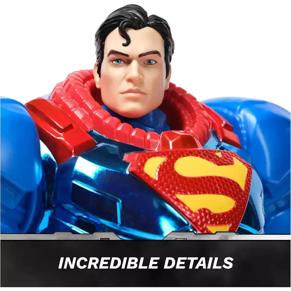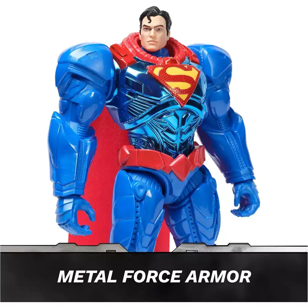 - Impresionante armadura metálica que refleja la fuerza de Superman.