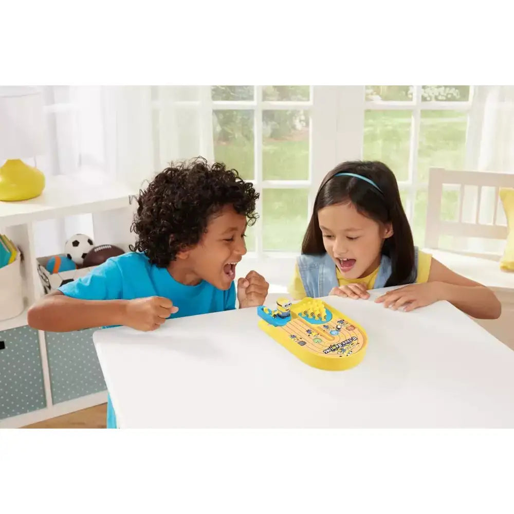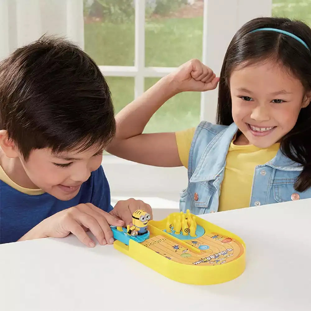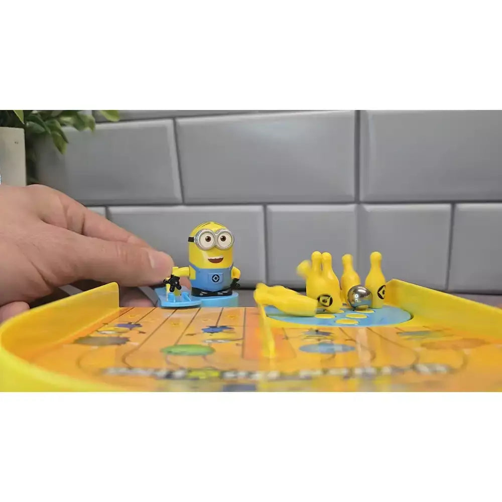 - Incluye: carril de juego, rampa de lanzamiento, bola y 6 bolos Minions.