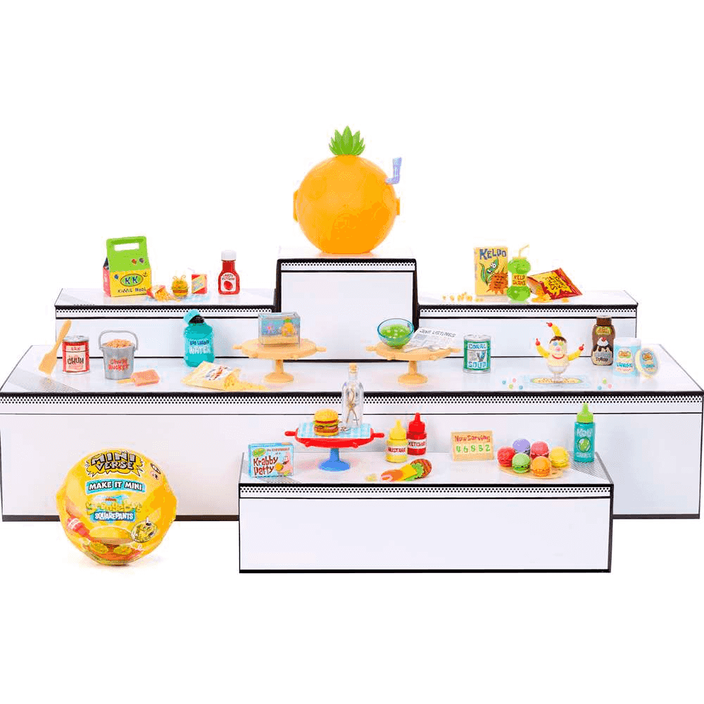 Incluye 1 cápsula Miniverse con mini piezas sorpresa inspiradas en Bob Esponja, accesorios, base de exposición y guía de montaje. El modelo es aleatorio.