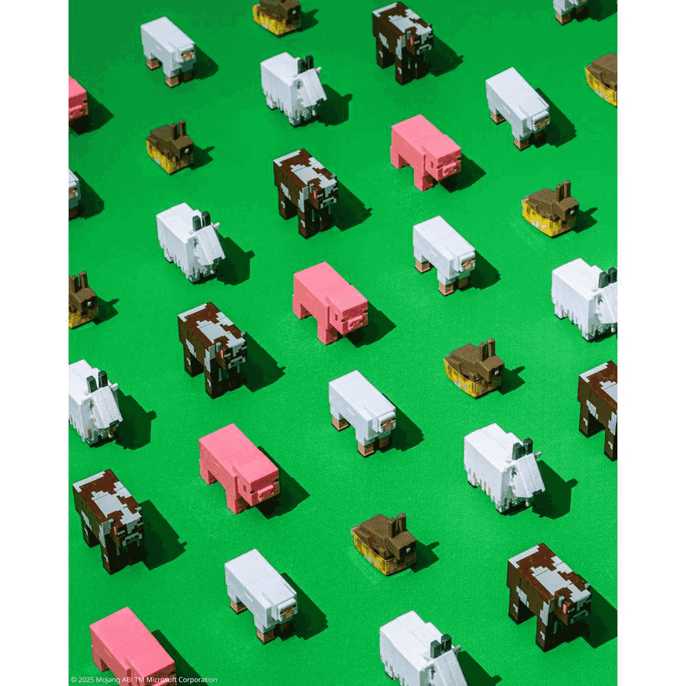 Cada bola sorpresa incluye los elementos necesarios para construir una escena inspirada en el famoso videojuego. Todo está diseñado en miniatura hiperrealista para que puedas crear pequeñas construcciones que recuerdan al icónico mundo pixelado de Minecraft.