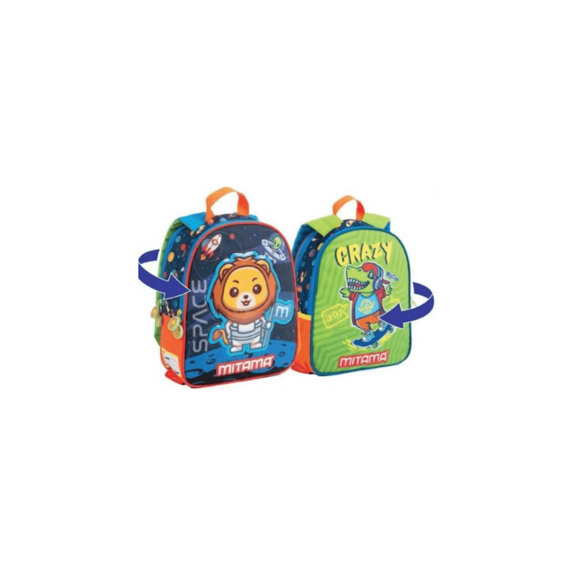 Mochila Mitama Spinny Boy Doble Cara 25cm Diseño y Funcionalidad en un Solo Producto