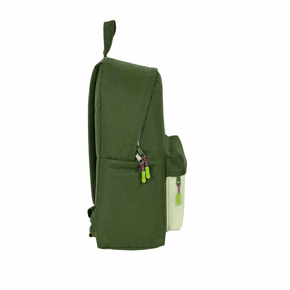 - Diseño moderno y versátil: Con un elegante color verde khaki y detalles en lima y morado, esta mochila ofrece un look sofisticado y actual.
