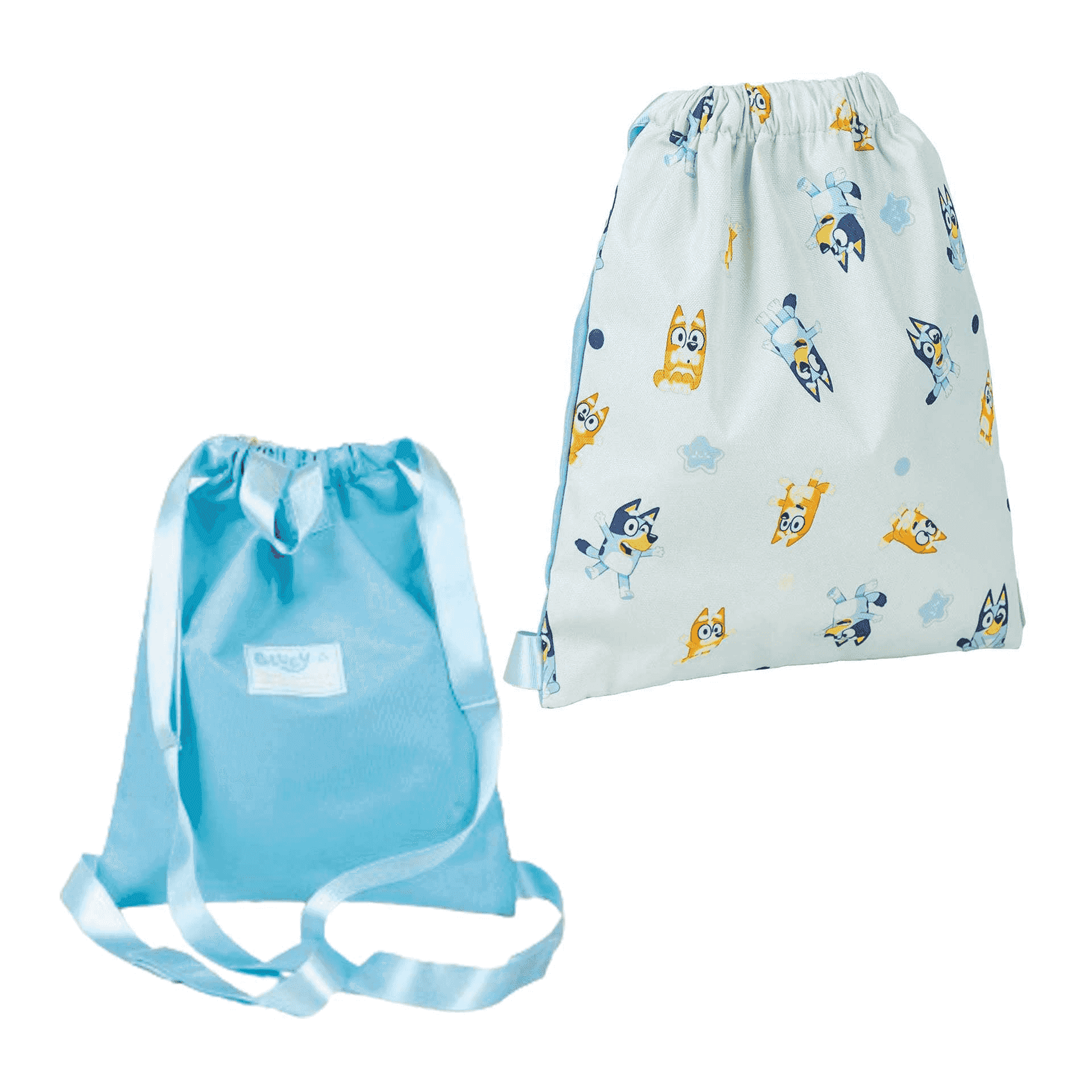 La mochila saquito de Bluey es ideal para llevar lo esencial de los niños, desde ropa de cambio hasta juguetes y pequeños libros. Su cierre de cordón ajustable permite un acceso fácil y rápido a los contenidos del saquito, mientras que el estampado con los personajes de Bluey añade un toque de diversión y personalidad.