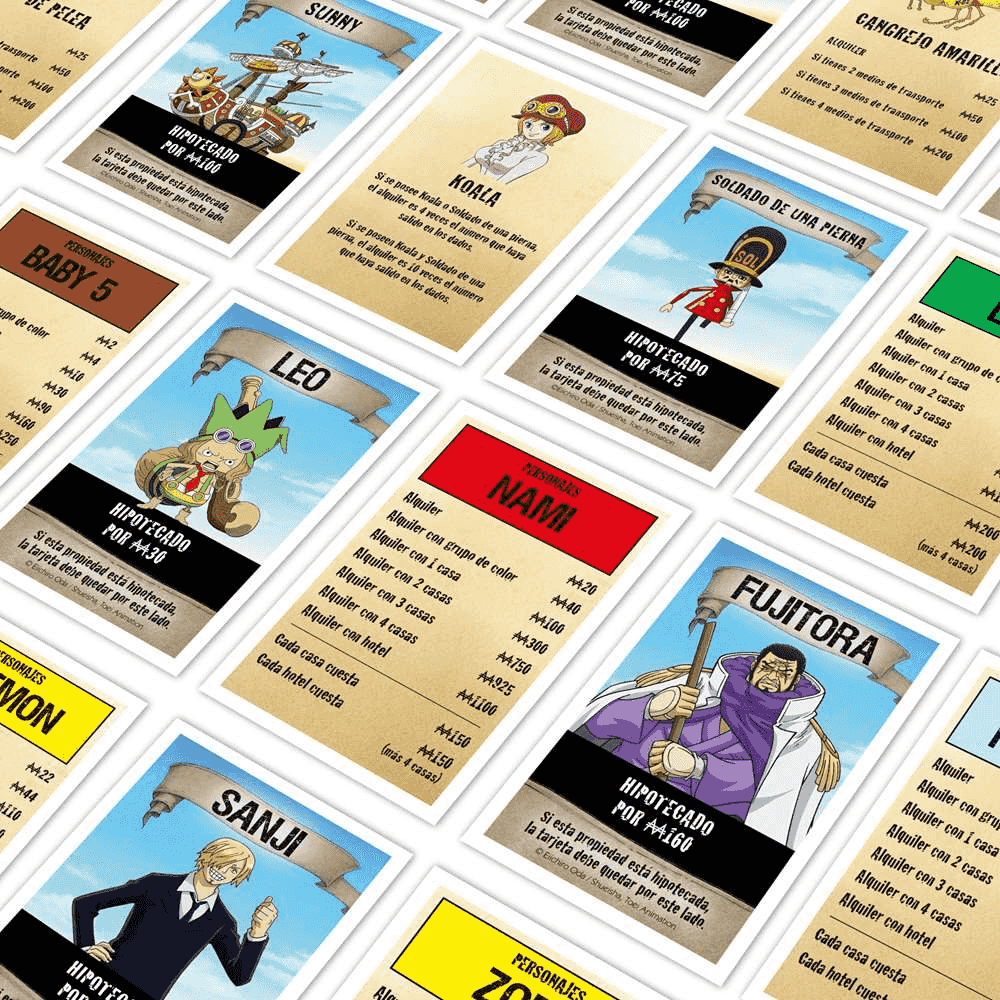 En esta edición especial, recorrerás escenarios inspirados en el universo de One Piece mientras compras, intercambias y compites para convertirte en la persona más poderosa del tablero. ¡Una experiencia perfecta para combinar estrategia, diversión y pasión por el anime!