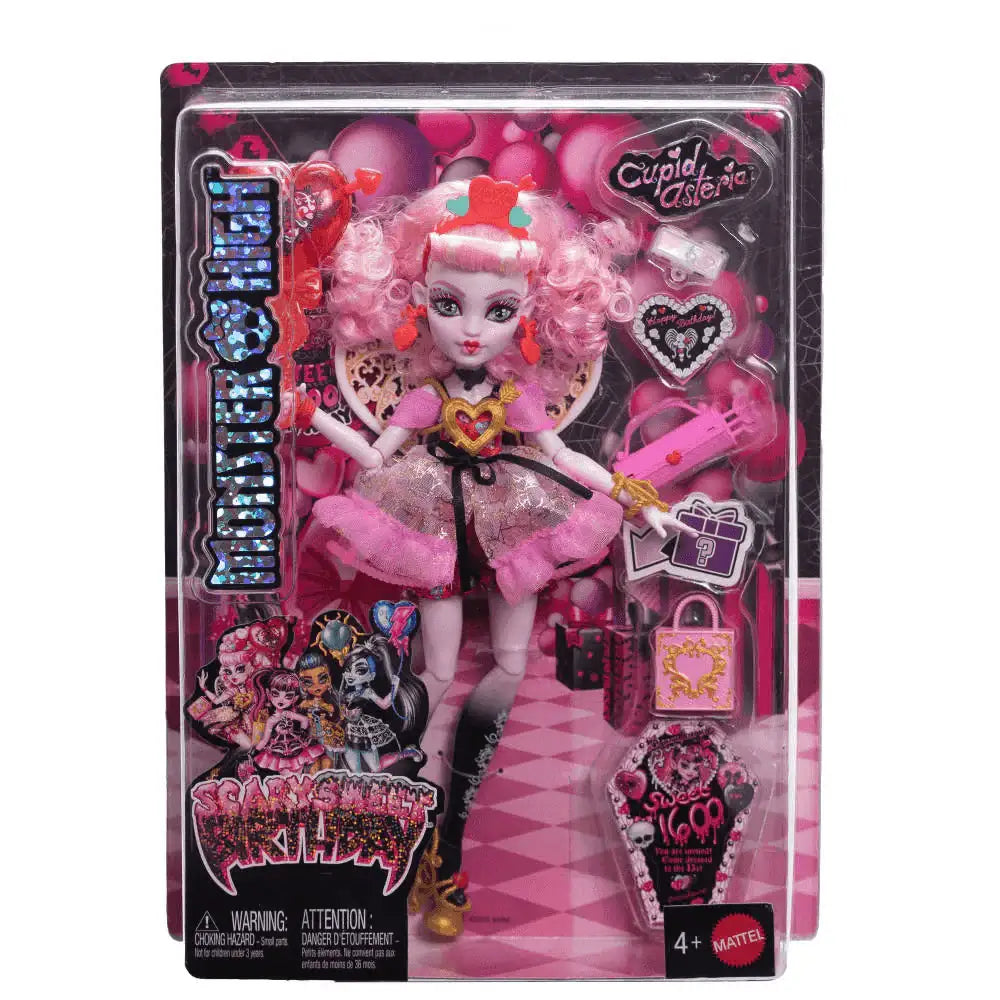 Monster High Cumplespantos Cupid Asteria – Muñeca de fiesta con alas y accesorios románticos