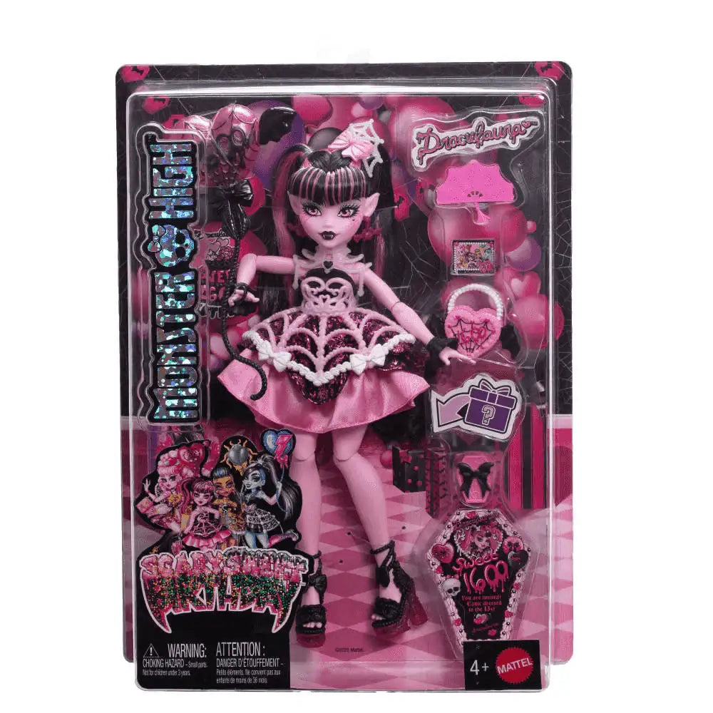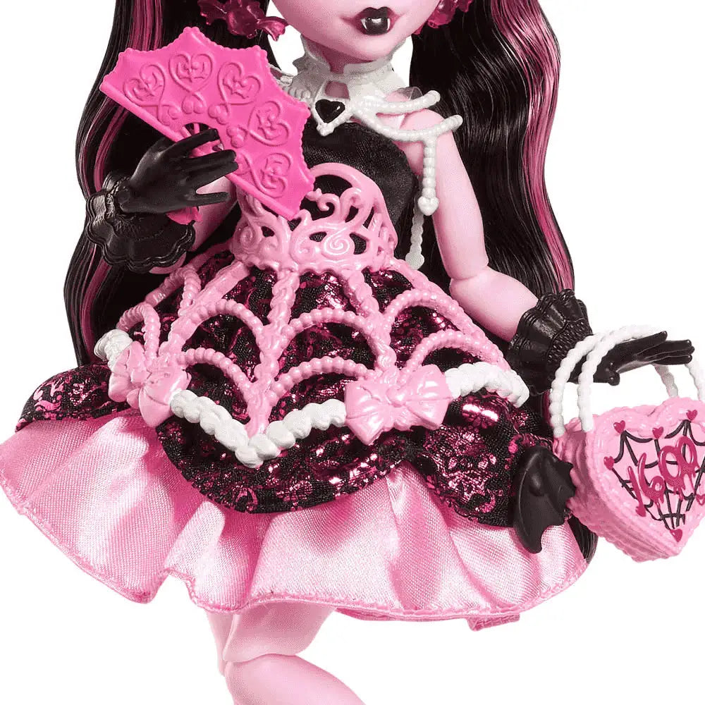 Monster High Cumplespantos Draculaura – Muñeca de fiesta con vestido rosa y accesorios