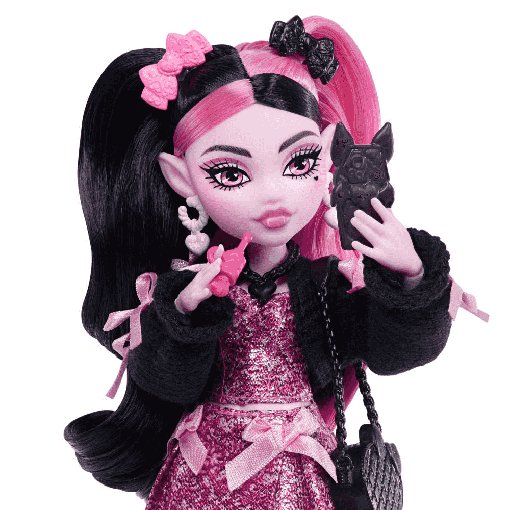 ¡Cuidado! El estilo de Draculaura es tan adorable que da miedo. Esta muñeca Monster High irradia una dulzura espeluznante con un look lleno de lazos, colores suaves y mucha personalidad, ideal para vivir aventuras vampíricas en el instituto más monstruoso.