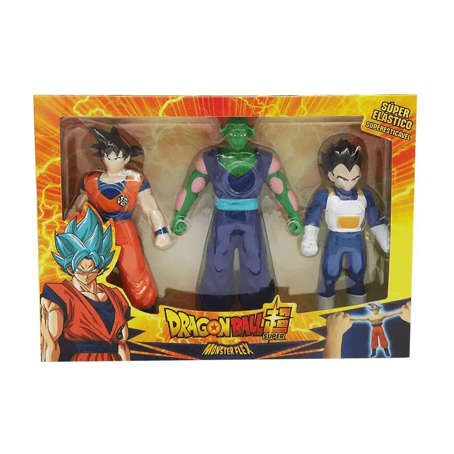 Monsterflex Dragon Ball Pack de 3 trae toda la energía del universo Dragon Ball a tus manos. ¡Estira, retuerce y desata tu imaginación con estos muñecos elásticos! Inspirado en tus personajes favoritos, este set permite revivir las aventuras de la serie con total libertad.