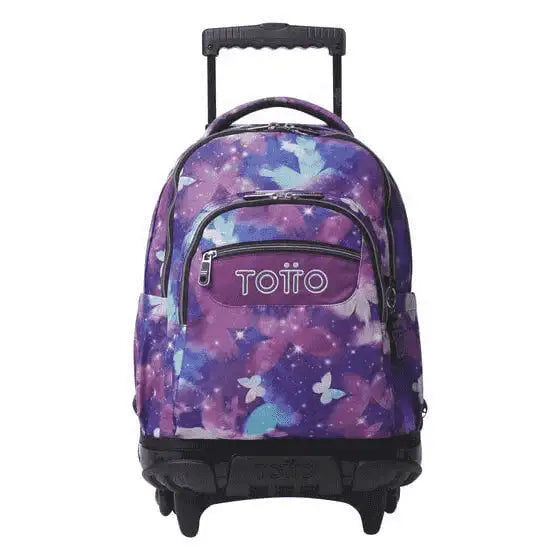 El Morral Totto Rue Bomber Renglones Glitter (versión Star Butterfly o Shiny Heart) está diseñado para combinar ruedas de goma resistentes con un estampado glitter luminoso. Incluye porta PC de 15,4', organizador interno, asa telescópica y protector bumper para cuidar cada detalle.