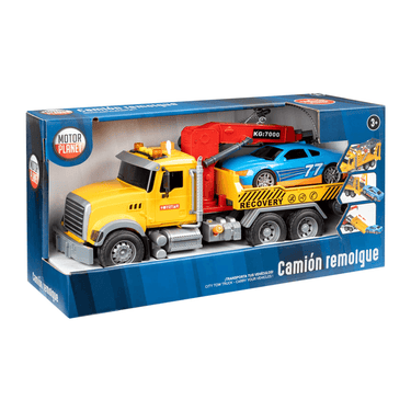 Nuestra grua de Motor Planet es perfecta para los pequeños amantes de los vehículos y de imitación de profesiones. ¡Conviértete en el mejor camionero y remolca todo lo que puedas! Con luz y sonidos. Edad recomendada: + 3 años.