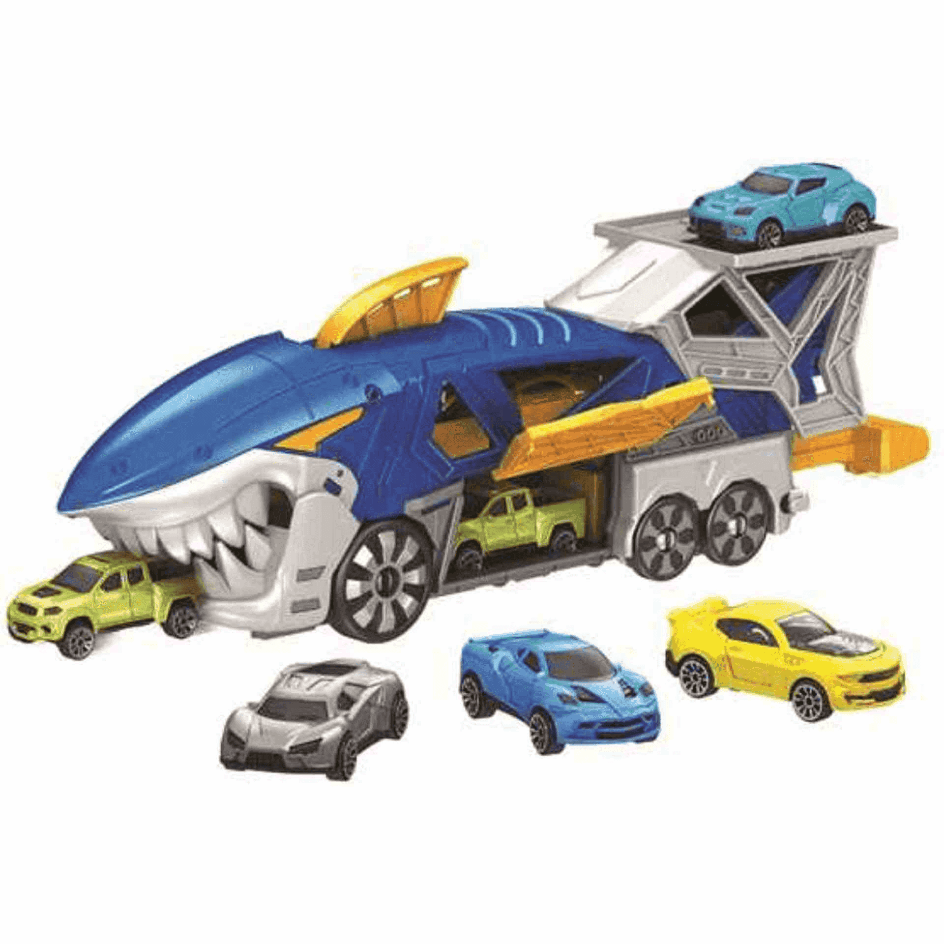 - Rampa con temática de tiburón: La rampa tiene un diseño increíble con un tiburón gigante que intentará atrapar los coches mientras bajan a toda velocidad.