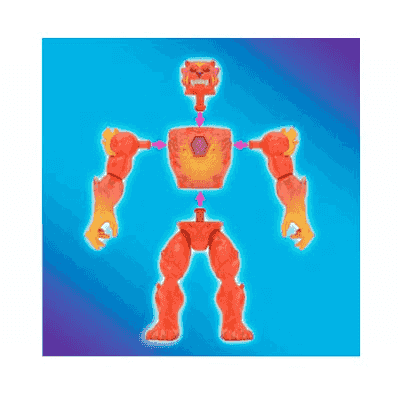 - Cinco figuras de acción híbridas con partes intercambiables.