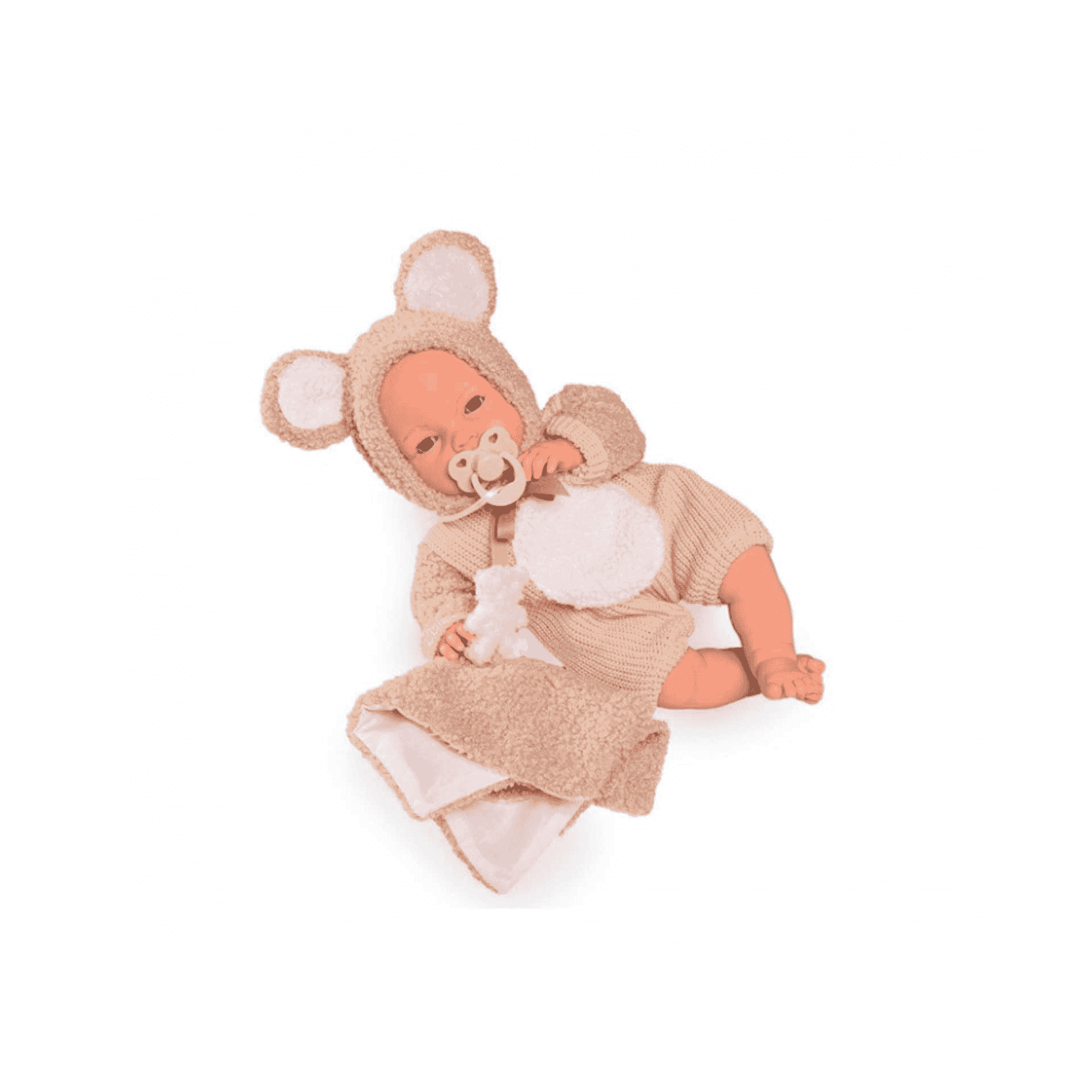 - Accesorios incluidos: Viene con una manta suave y un chupete, complementos ideales para el juego de cuidado.