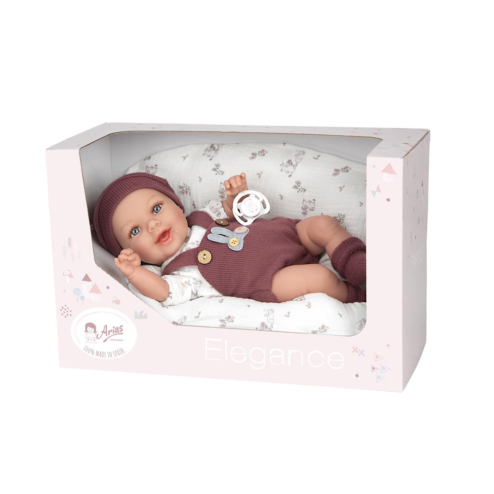 La Muñeca Elegance Gadi Granate de Muñecas Arias es una representación encantadora de un bebé real. Con una altura de 35 cm, esta muñeca destaca por su vestimenta en tonos granate y su suave cojín a juego, ofreciendo una experiencia de juego llena de realismo y cariño.