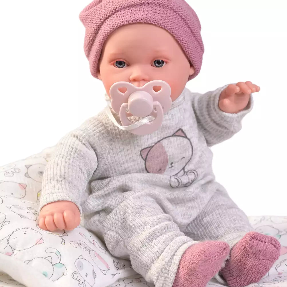 A Kika le encantan los gatitos, por eso su cojín y colchón tienen un estampado adorable inspirado en sus mascotas favoritas. Con su pijama y gorrito a juego, es imposible resistirse a su carita dulce y expresiva.